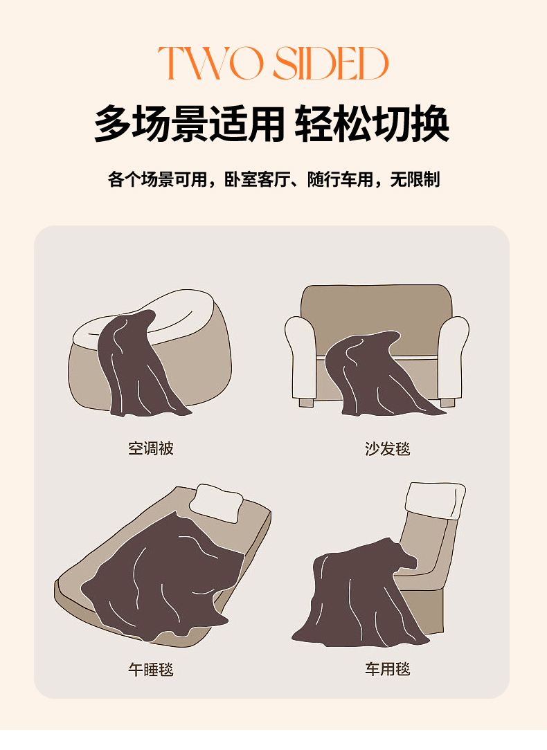 (总)宜代光年 2024新款520g全消光牛奶绒迪奥格盖毯,卡其,米白,柔粉,雾灰