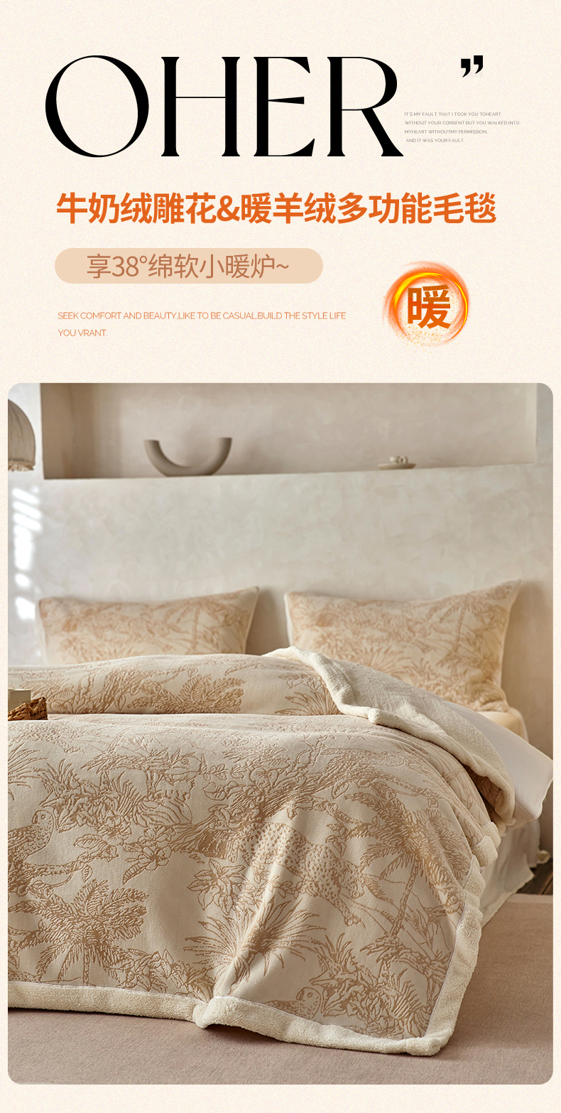 宜代光年 2025新款牛奶绒雕花复合毛毯系列 繁花绒毯-粉