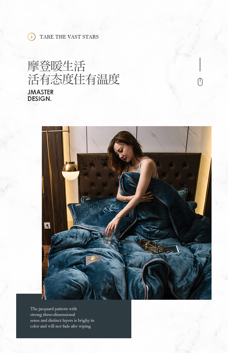 商品名称:宜代光年 2025新款加厚保暖纯色牛奶绒黑金四件套系列 丹霞橙