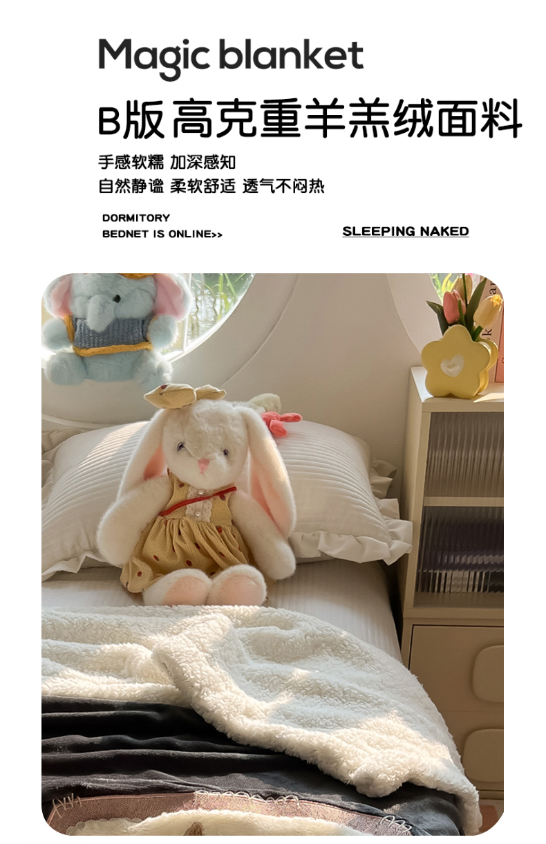 商品名称:子钦家纺 2025新款秋冬加厚牛奶绒羊羔绒卡通贴布绣包边毛毯(第二波) 睡觉兔-深灰