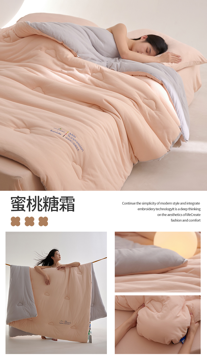 • 91家纺网 家纺一手货源 找家纺 头等舱 2025新款全棉A类针织 零压 深睡 德国ADVANSA 抗菌 100%阻螨低致敏秋冬被(模特图) 蜜桃糖霜