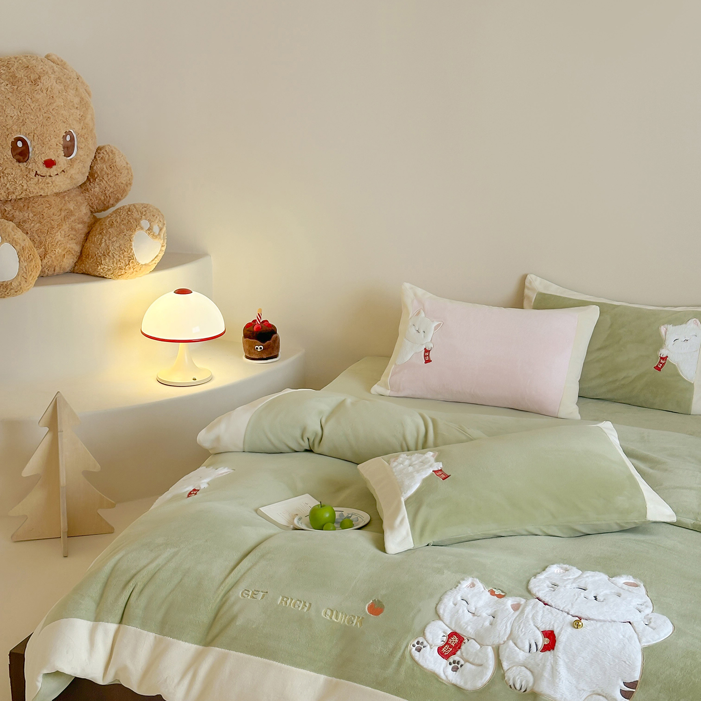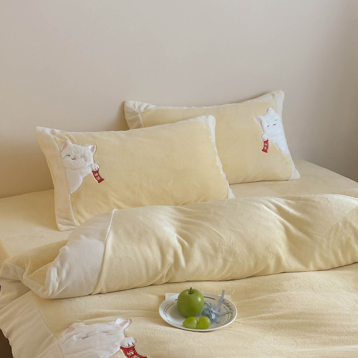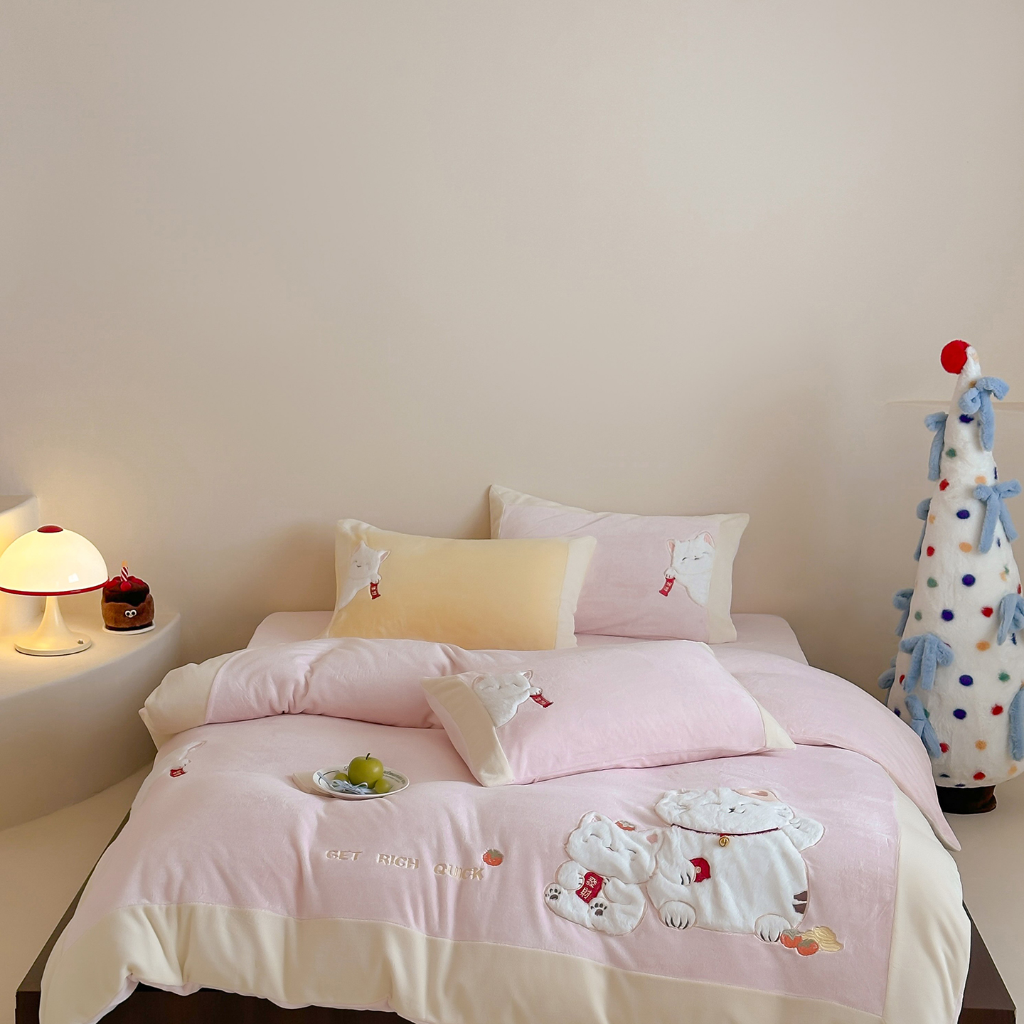 当前位置: 91家纺网 > 商品网购 > 床品套件 > 四件套 > 牛奶绒四件套 > JUICY 橘滋家纺 2025新款高定敲可爱招财猫牛奶奢绒系列四件套 (线上控价 券后不低于368元) 福抱抱招财猫-新春萌芽