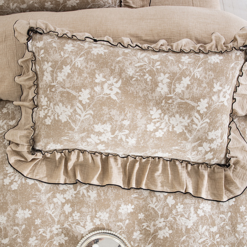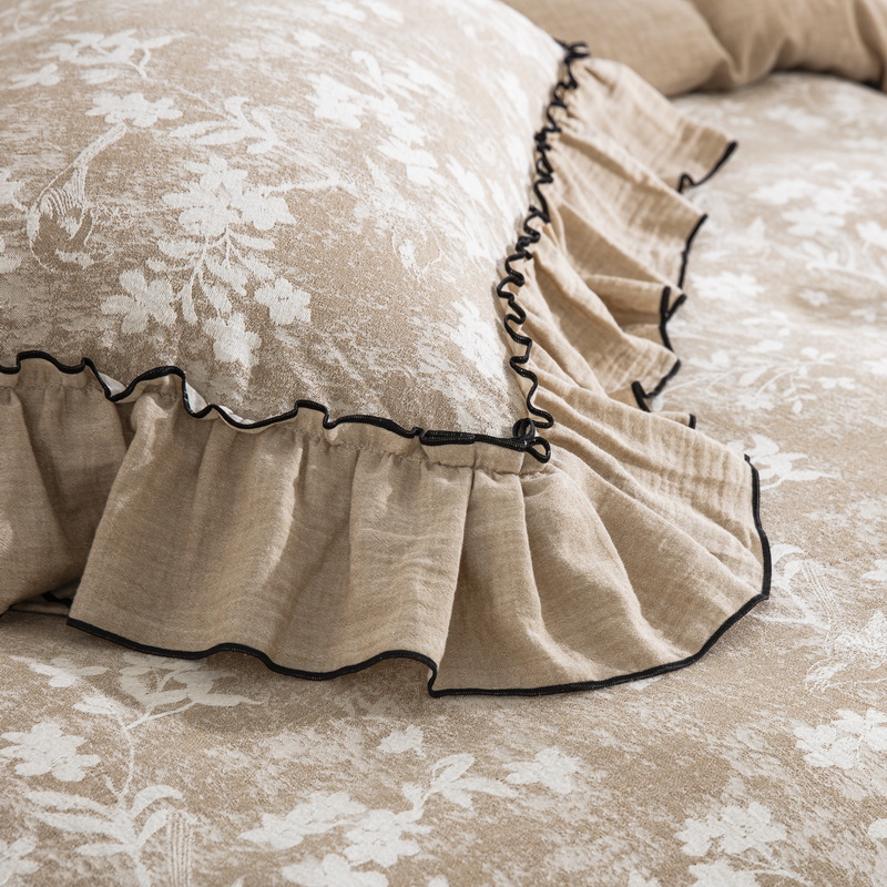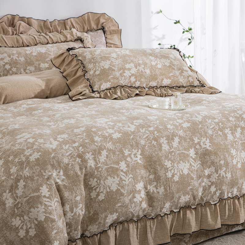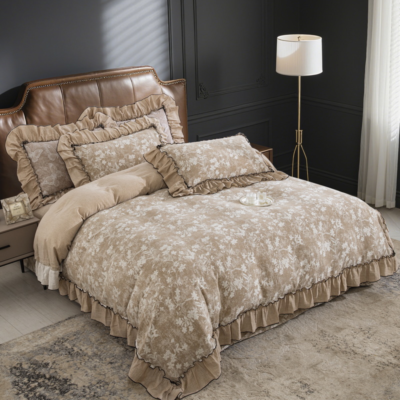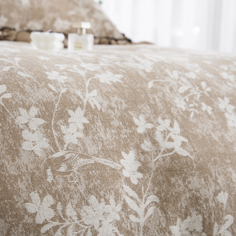 鲁爱家纺供货 2025新款韩版色织提花四件套 鸟语花香-浅咖