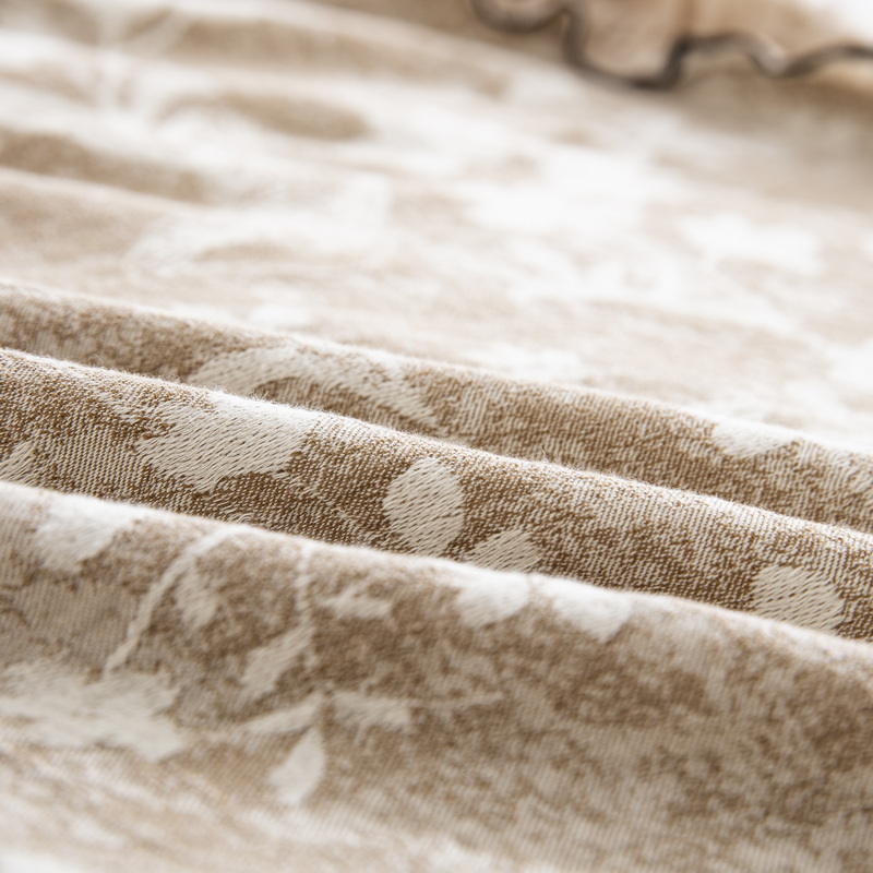 商品名称:鲁爱家纺供货 2025新款韩版色织提花四件套 鸟语花香-浅咖