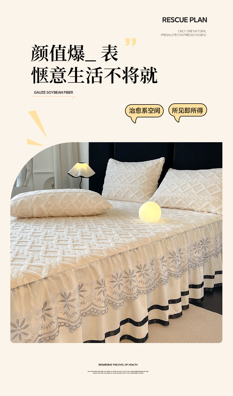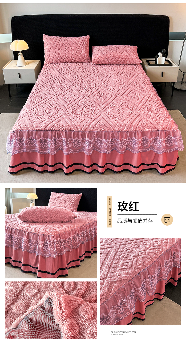 • 91家纺网 家纺一手货源 找家纺 (总)米瑞娜  2025新款塔芙绒雕花蕾丝床裙跨境外贸,白色,宝蓝,果绿,灰色,卡其,蓝灰,玫红,浅紫