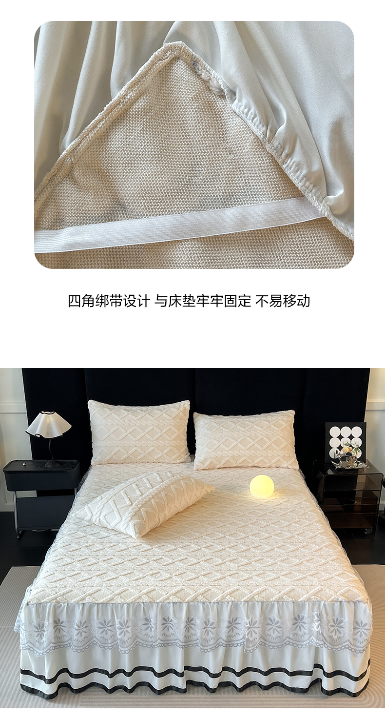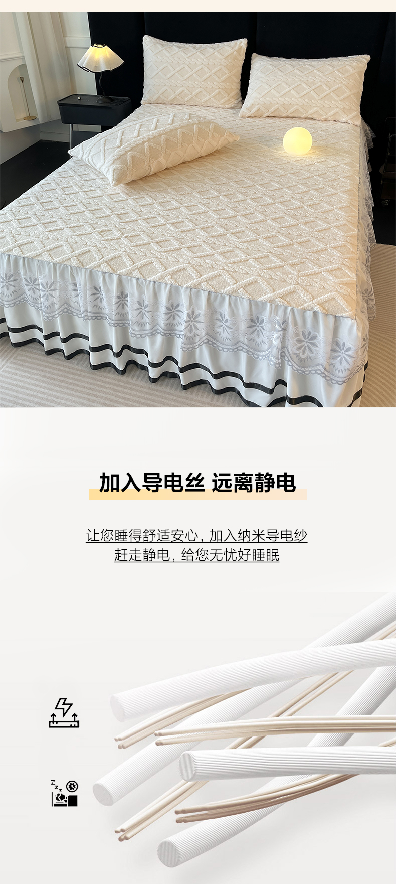 米瑞娜 2025新款塔芙绒床裙三件套雕花绒蕾丝跨境单床裙外贸现货尺寸齐全 马尾型-白色