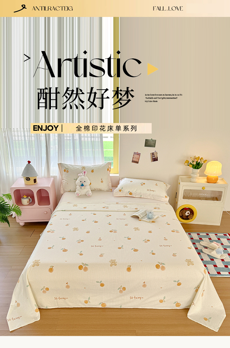 (总)尚帛 2026新款全棉时尚印花单床单,艾米丽-绿,宠爱,花间采趣-咖,可可甜心,可颂日记,浅影,如玉如兰,碎花学院,五星集,叶柔粉,叶之恋