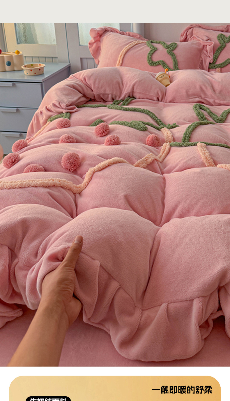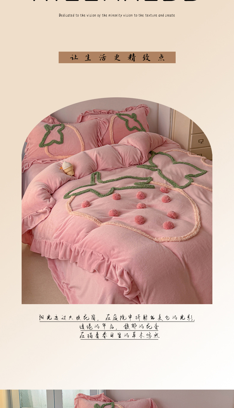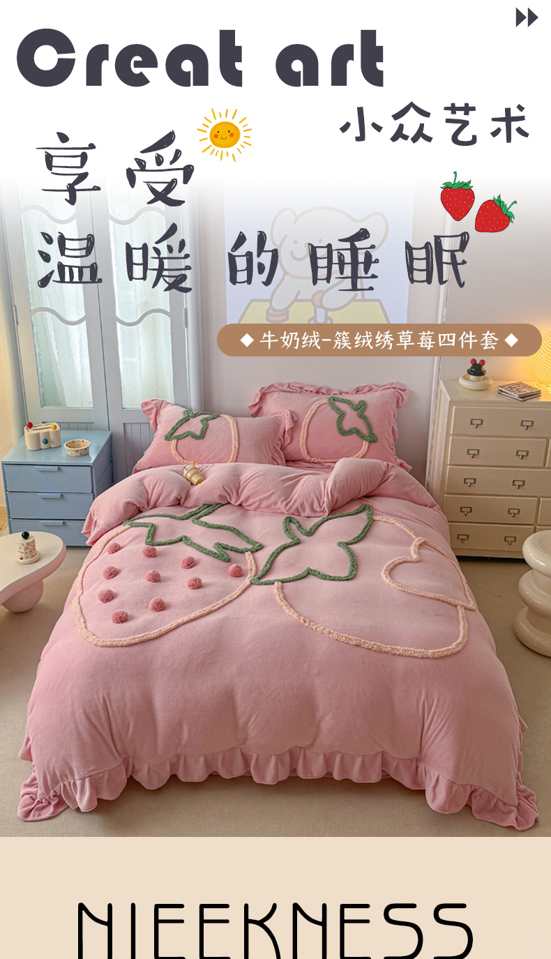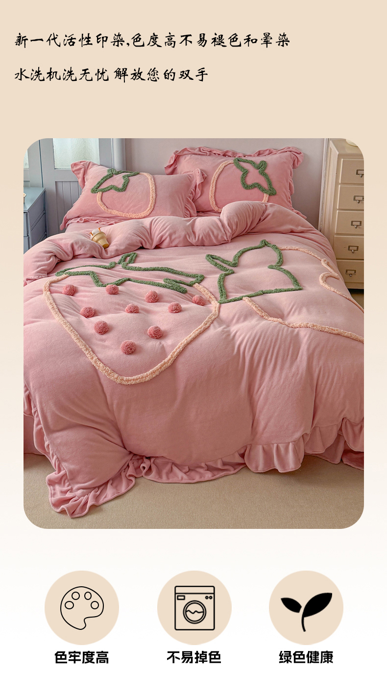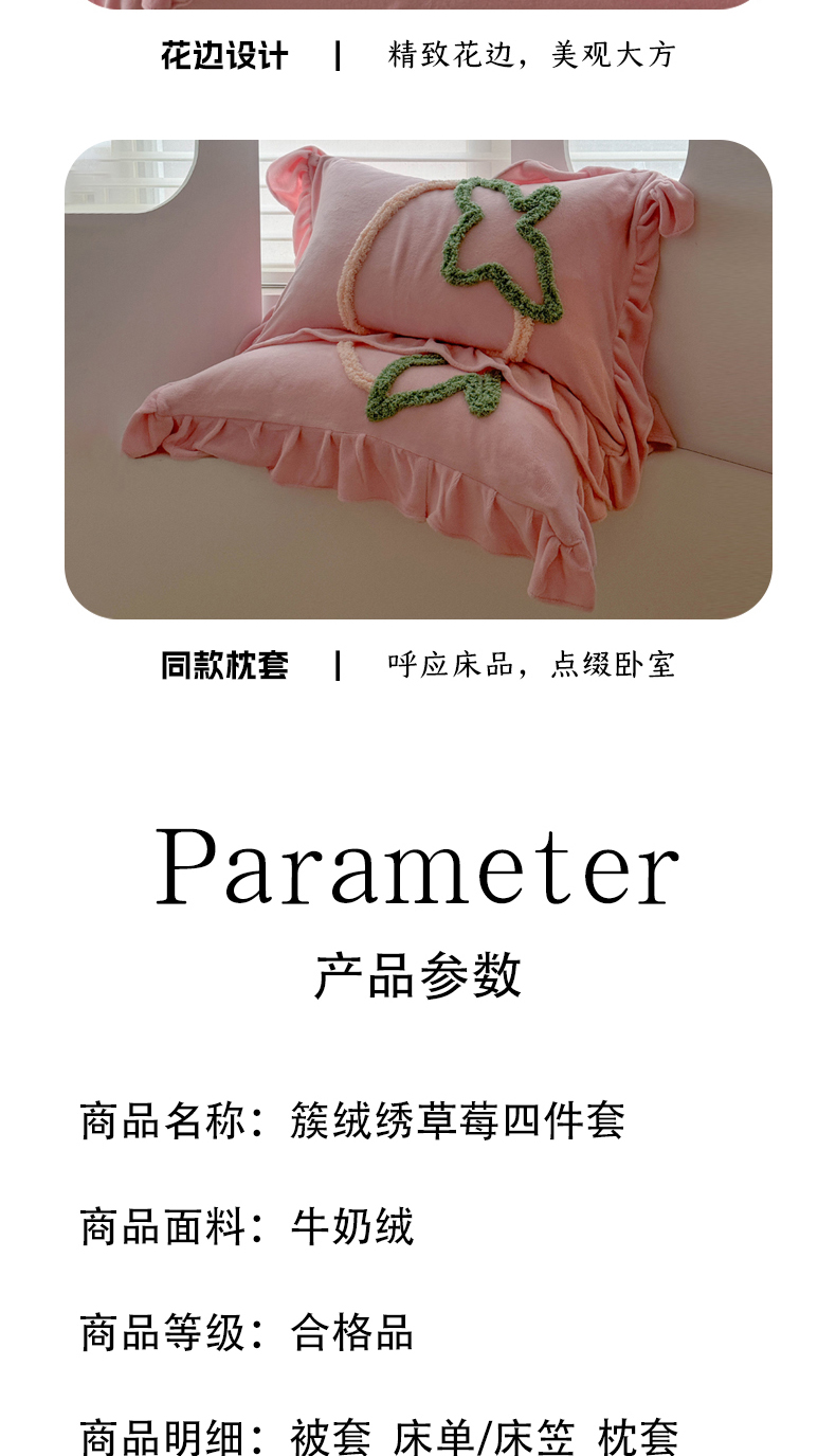 当前位置: 91家纺网 > 商品网购 > 床品套件 > 四件套 > 牛奶绒四件套 > 缘生活 2025新款牛奶绒-簇绒绣草莓四件套 簇绒绣草莓-粉色