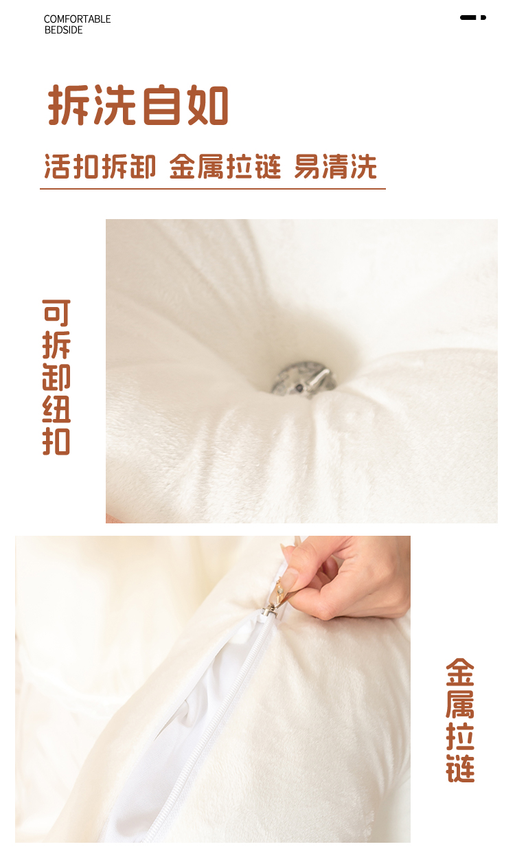 (总)碧尔家居 2025新款简约猫长条机械钉扣水洗棉床头靠枕,米黄,浅蓝,银灰