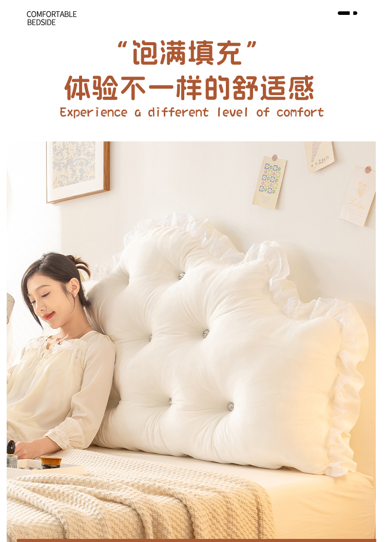 商品名称:碧尔家居 2025新款床头软靠垫加厚防撞靠背卧室靠枕固定绑带榻榻米软包可拆洗-朦胧 朦胧-乳白
