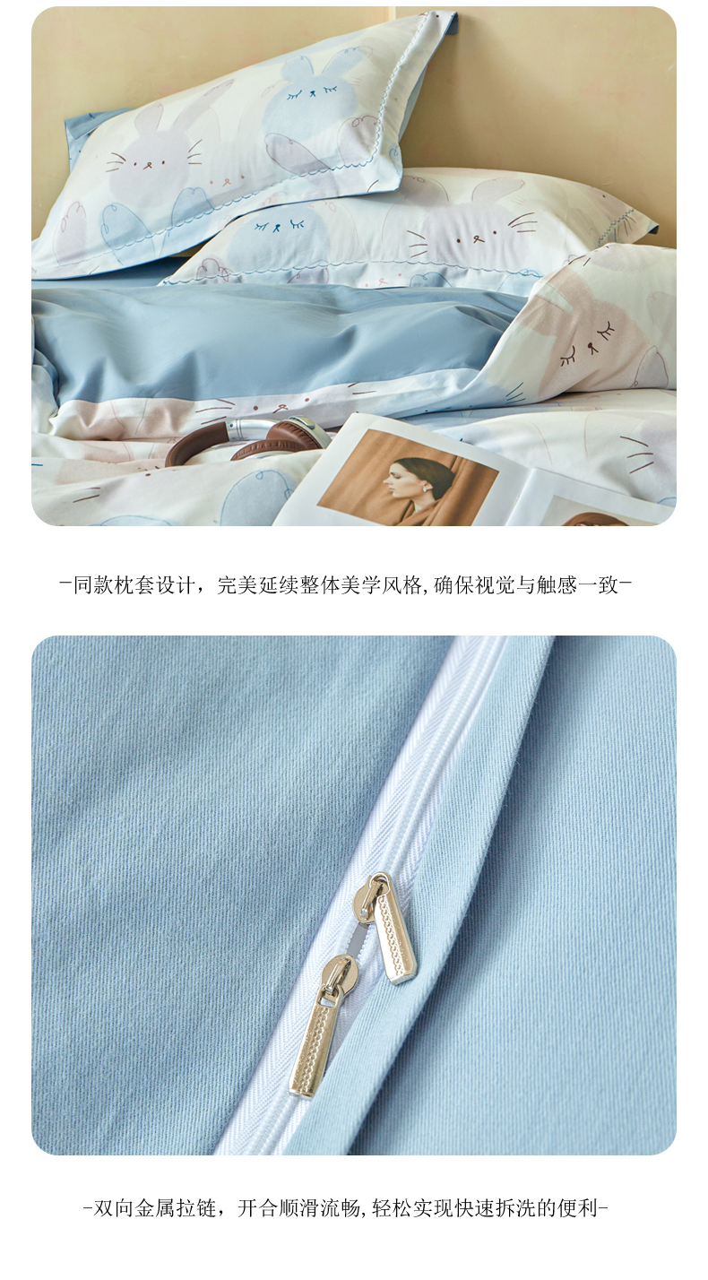 商品名称:洺兰家居 2025年新款秋冬加厚全棉磨毛四件套纯棉生态磨毛印花套件 萌萌兔-粉