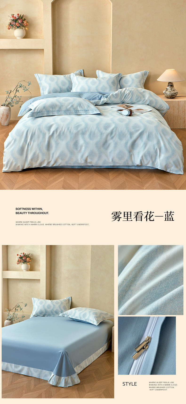 (总)洺兰家居 2026年新疆长绒棉100支秋冬款轻磨毛加厚保暖工艺款四件套床上用品,路易斯-米,千屿-曼卡粉,一见倾心-米,羽纱-卡其,织梦-粉,栀子花开-绿