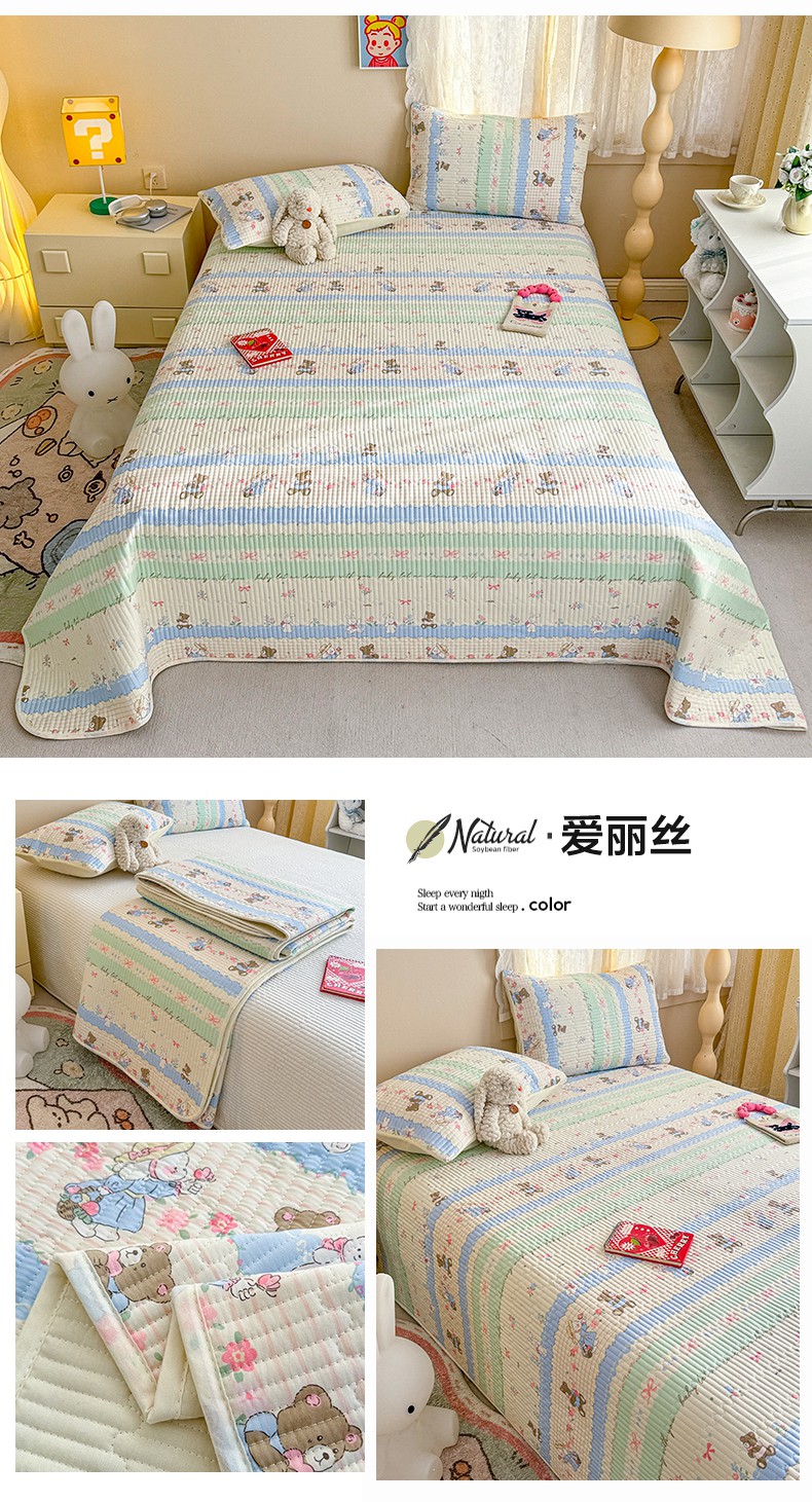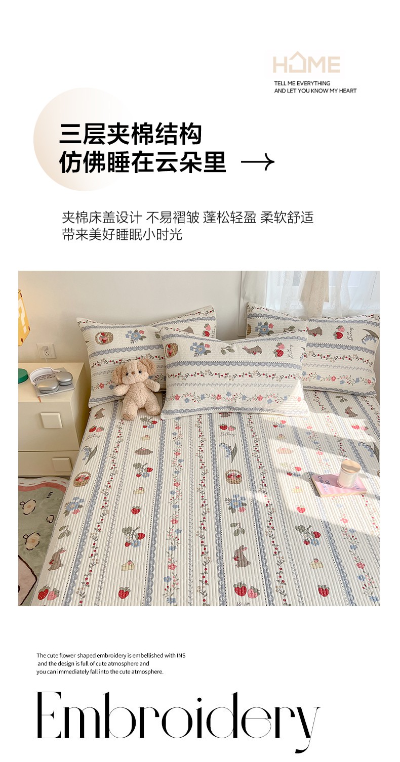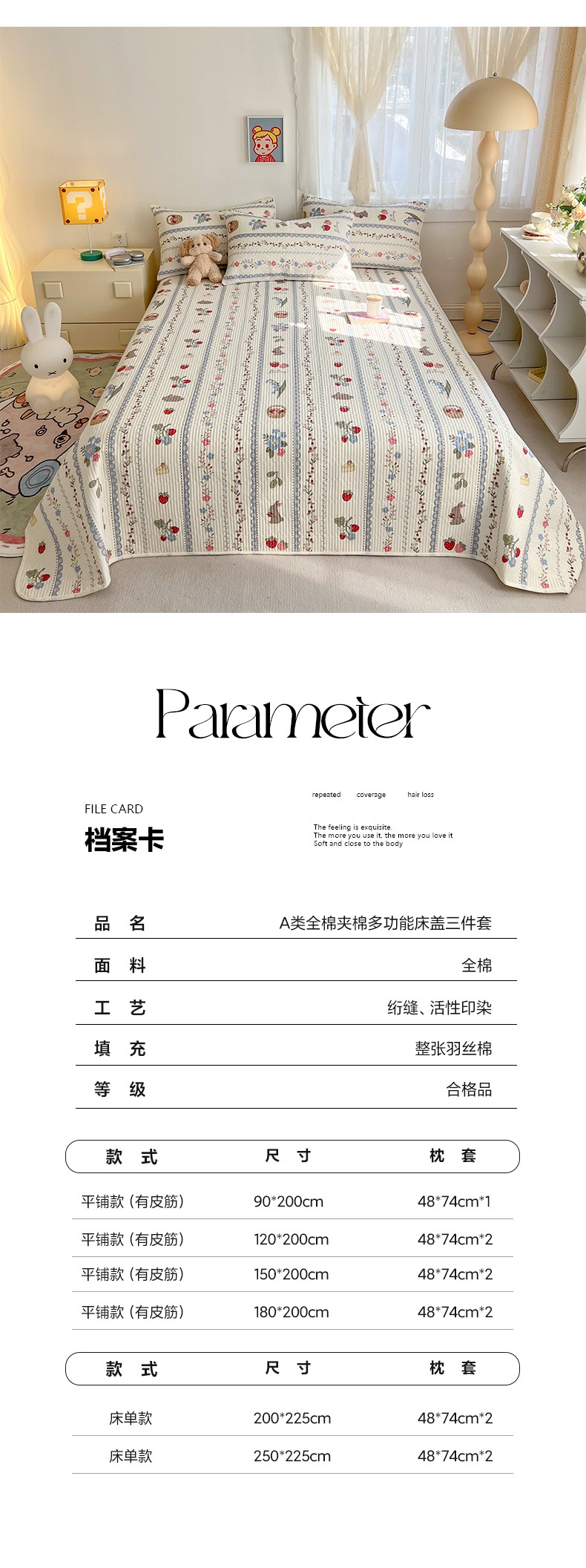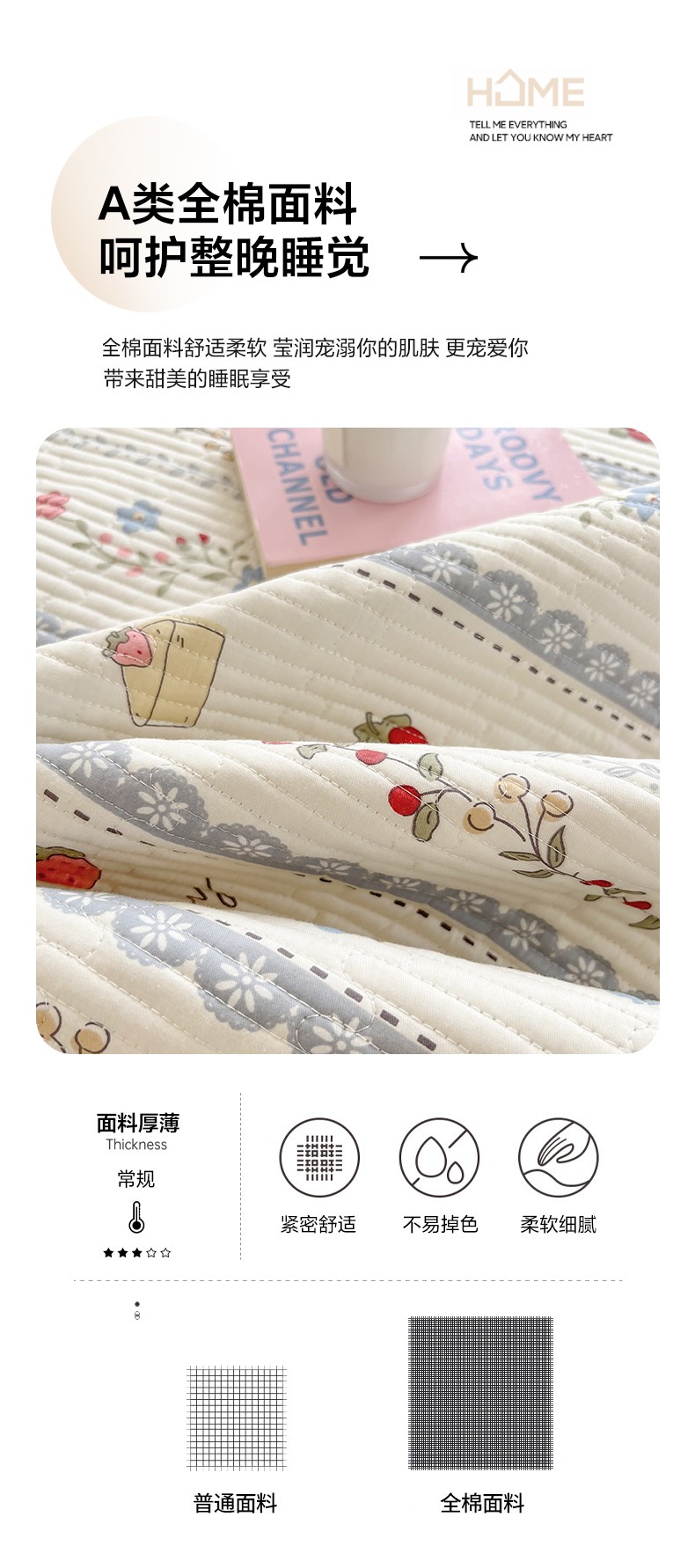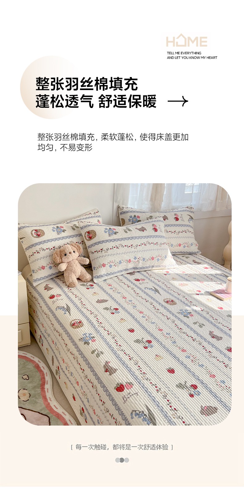 • 91家纺网 家纺一手货源 找家纺 妮可 2025新款热款花型印花全棉夹棉多功能床垫-床盖 花丛兔兔