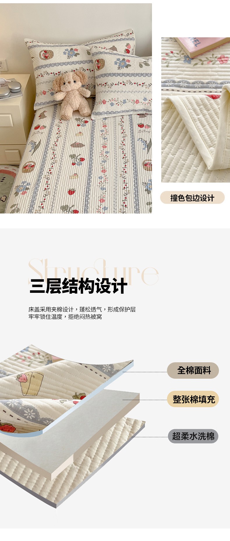 妮可 2025新款热款花型印花全棉夹棉多功能床垫-床盖 花丛兔兔