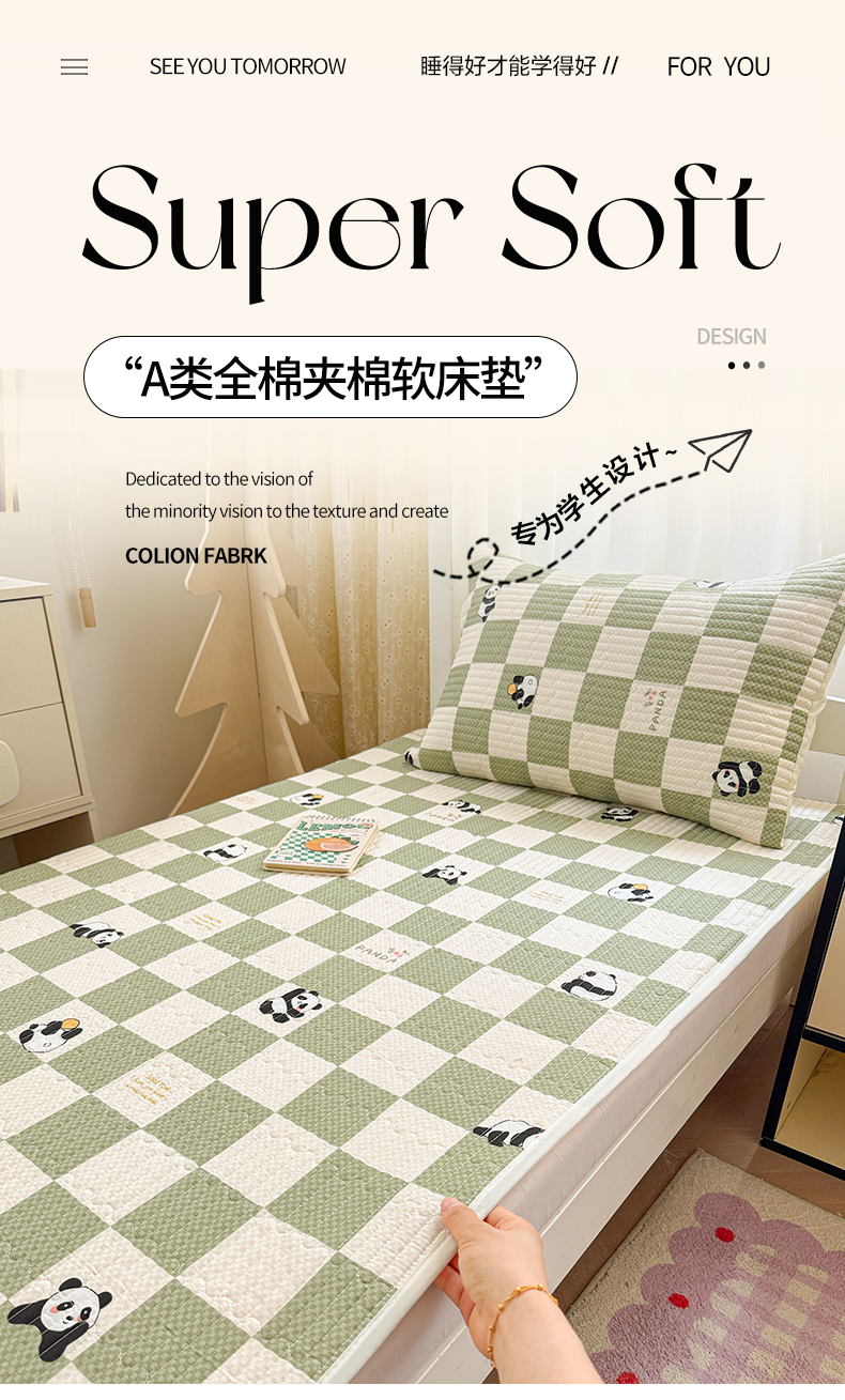 当前位置: 91家纺网 > 商品网购 > 床垫/床褥 > 普通床垫 > 妮可 2025热款学生床全棉夹棉多功能床垫-床盖 棋盘熊猫