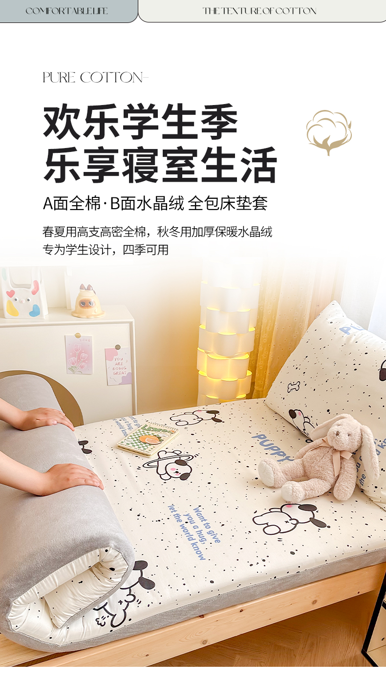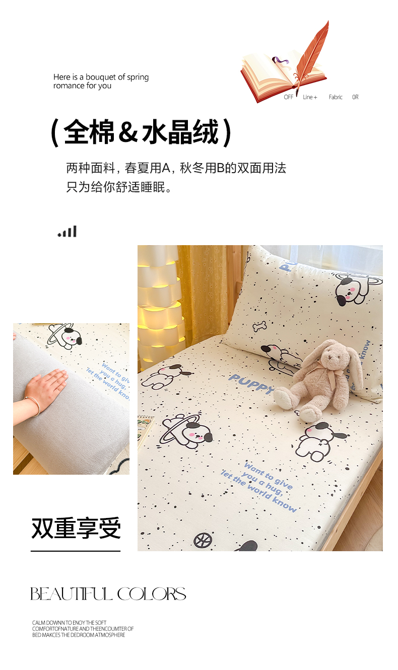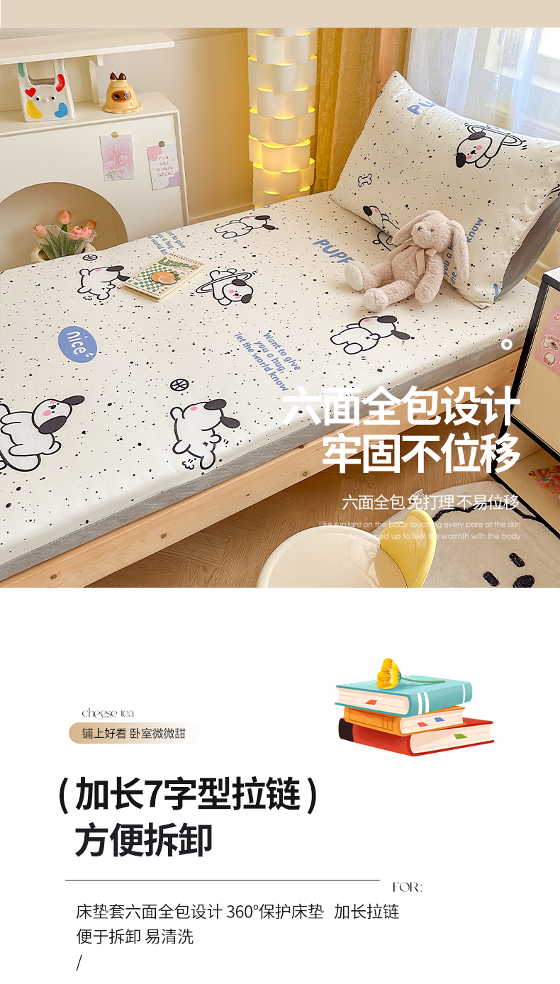 商品名称:妮可 2025热款花型全包床垫套褥子套(AB双版A全棉B绒) 可爱修狗