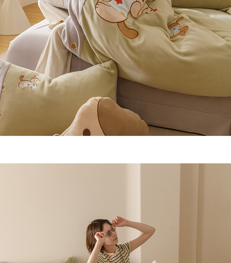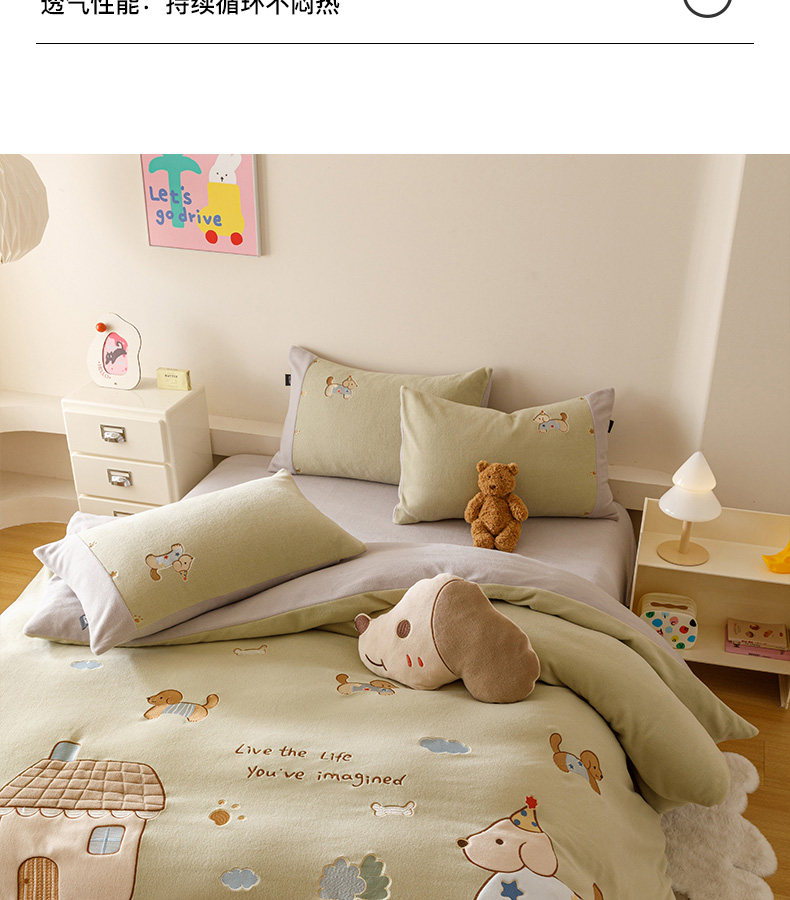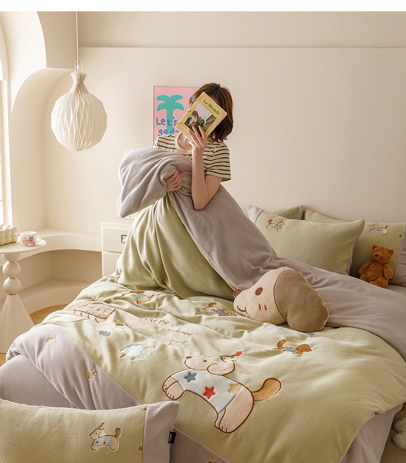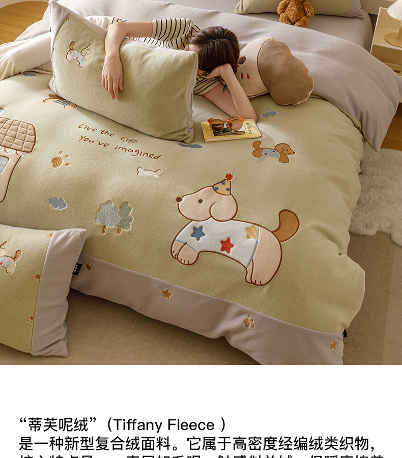 卡姿家纺 2025秋冬仿羊绒毛呢触感蒂芙呢绒— 小狗可乐 小狗可乐-绿