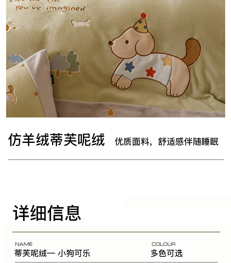 商品名称:卡姿家纺 2025秋冬仿羊绒毛呢触感蒂芙呢绒— 小狗可乐 小狗可乐-绿