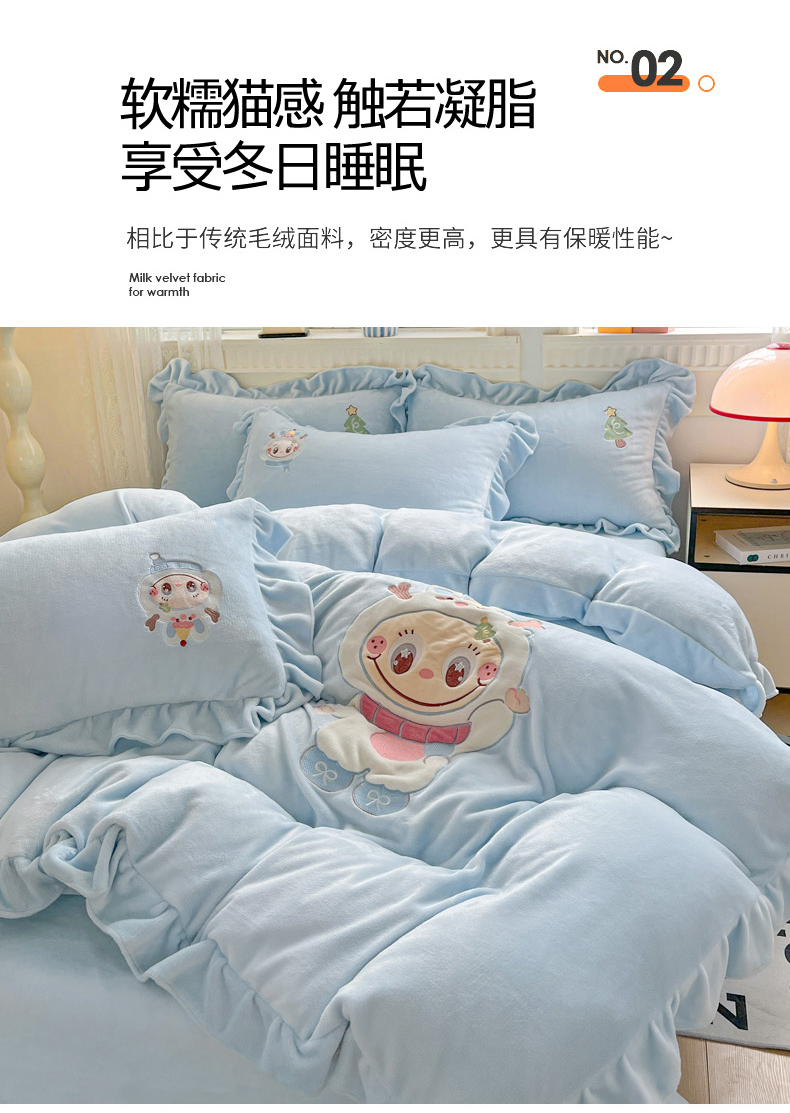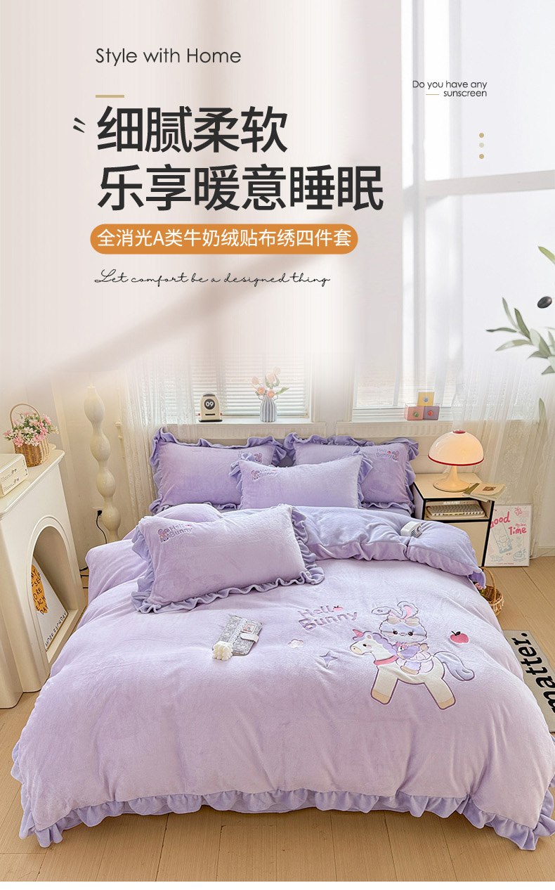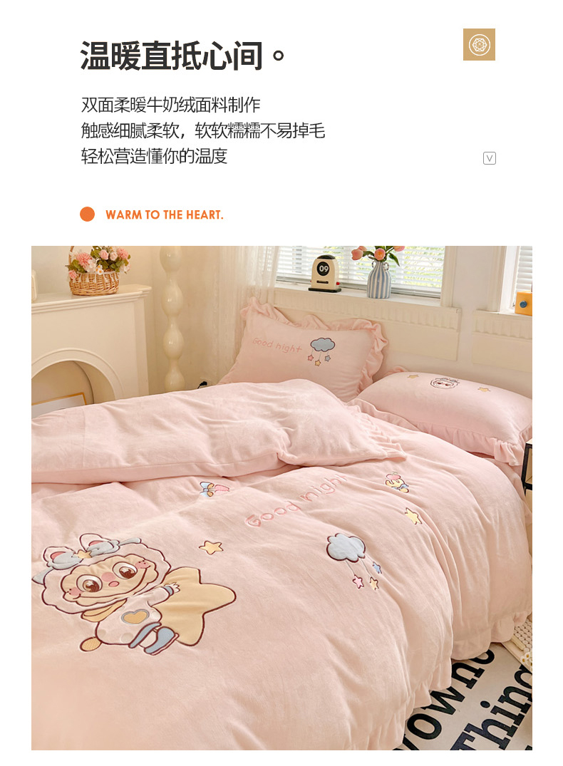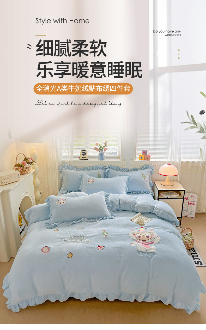 当前位置: 91家纺网 > 商品网购 > 床品套件 > 四件套 > 牛奶绒四件套 > (总)星尚家纺 2025新款全消光230g牛奶绒加厚保暖卡通贴布绣三件套四件套