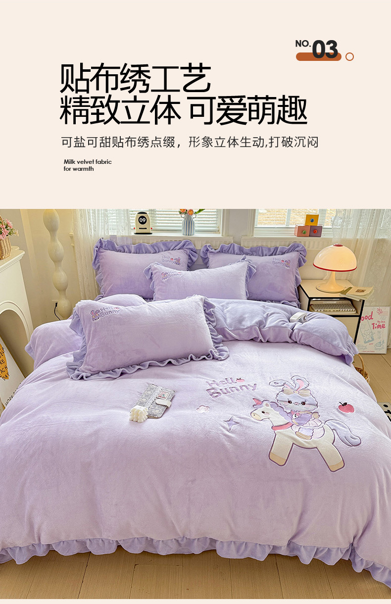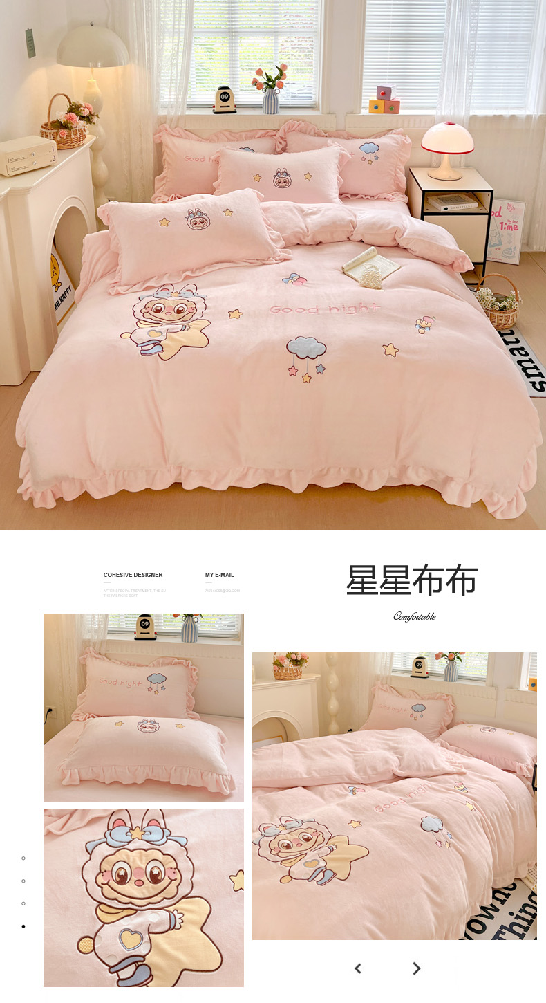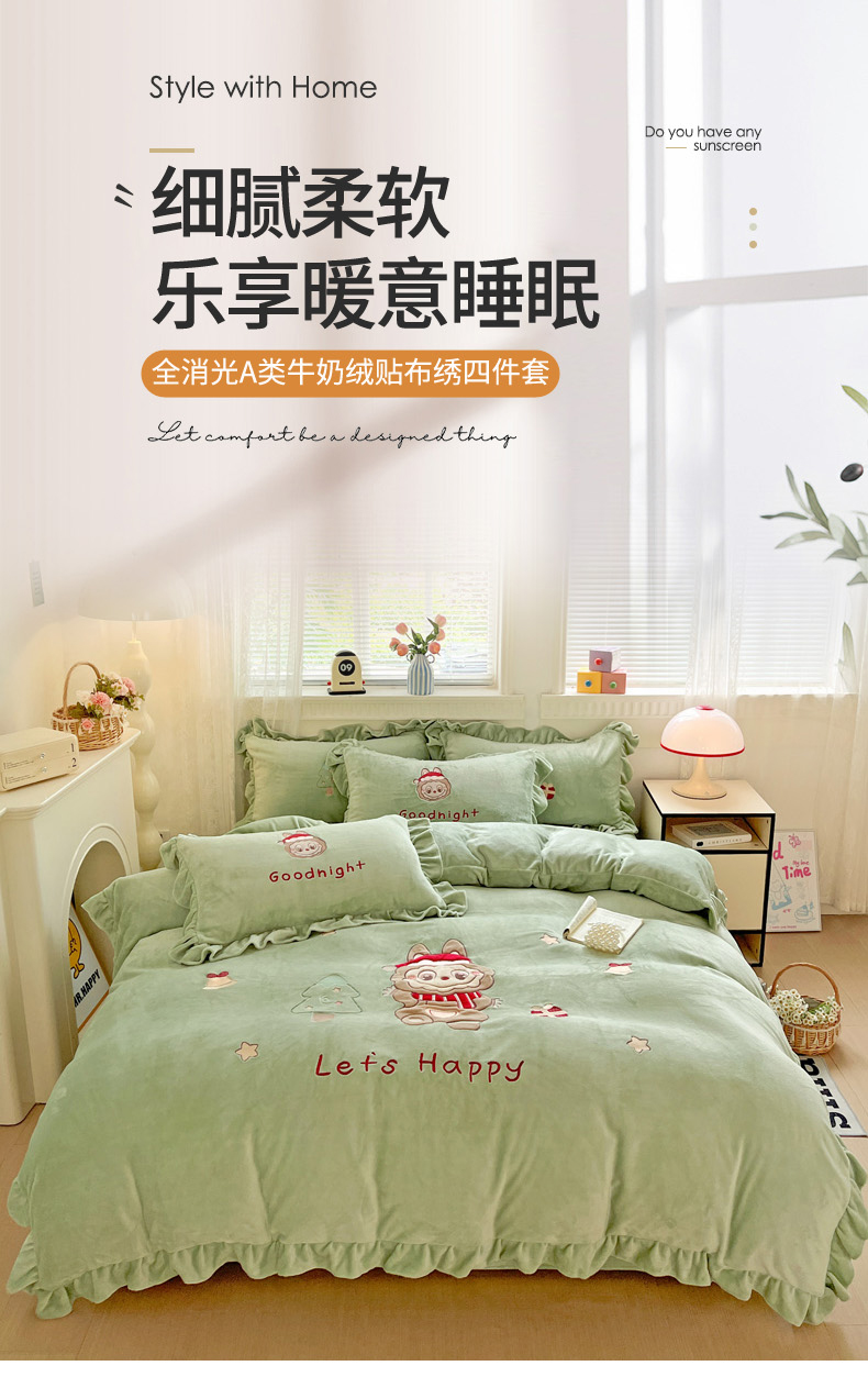 当前位置: 91家纺网 > 商品网购 > 床品套件 > 四件套 > 牛奶绒四件套 > (总)星尚家纺 2025新款全消光230g牛奶绒加厚保暖卡通贴布绣三件套四件套