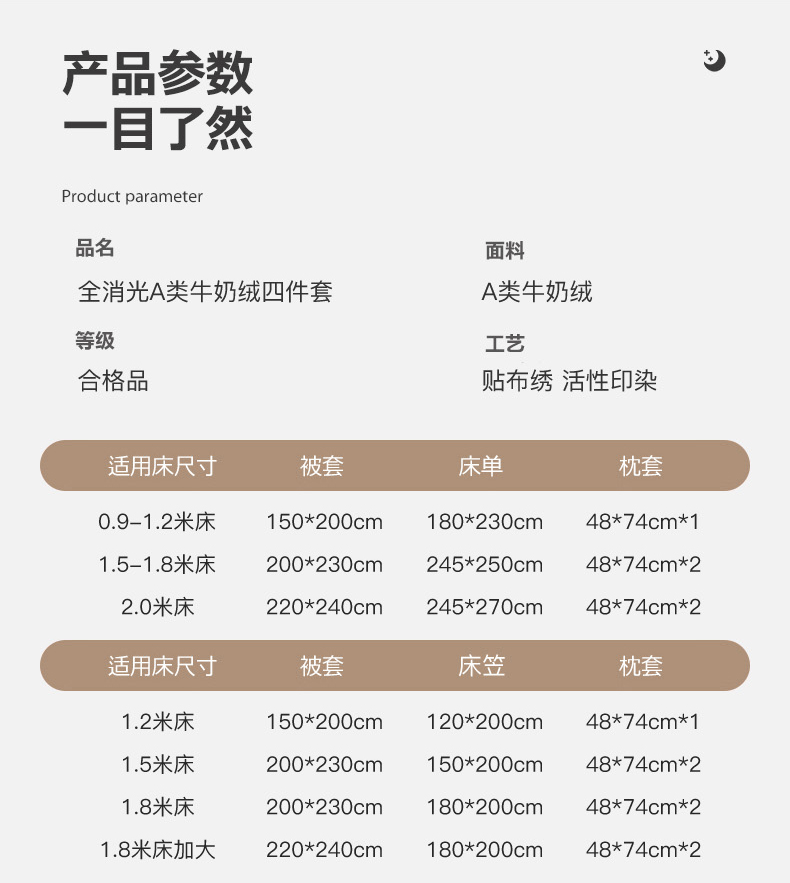 1.8m床笠款四件套(被套加大) | ¥190.00 |