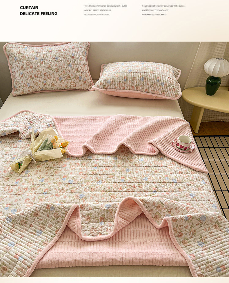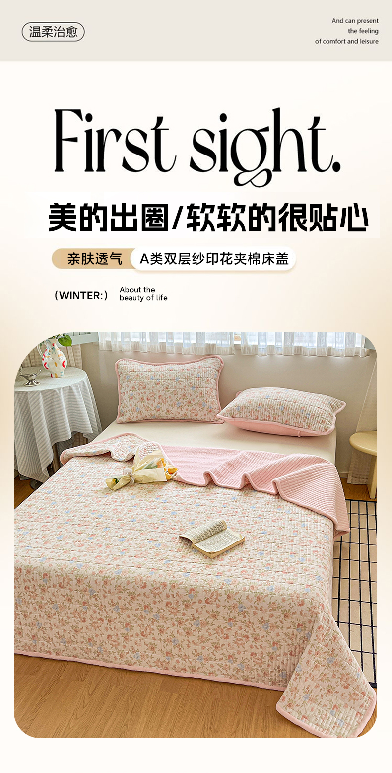 • 91家纺网 家纺一手货源 找家纺 瑞钰 2025新款A类双层纱印花夹棉床盖 繁花
