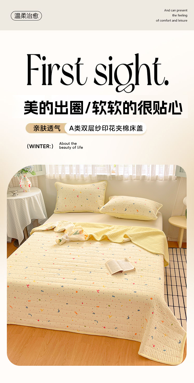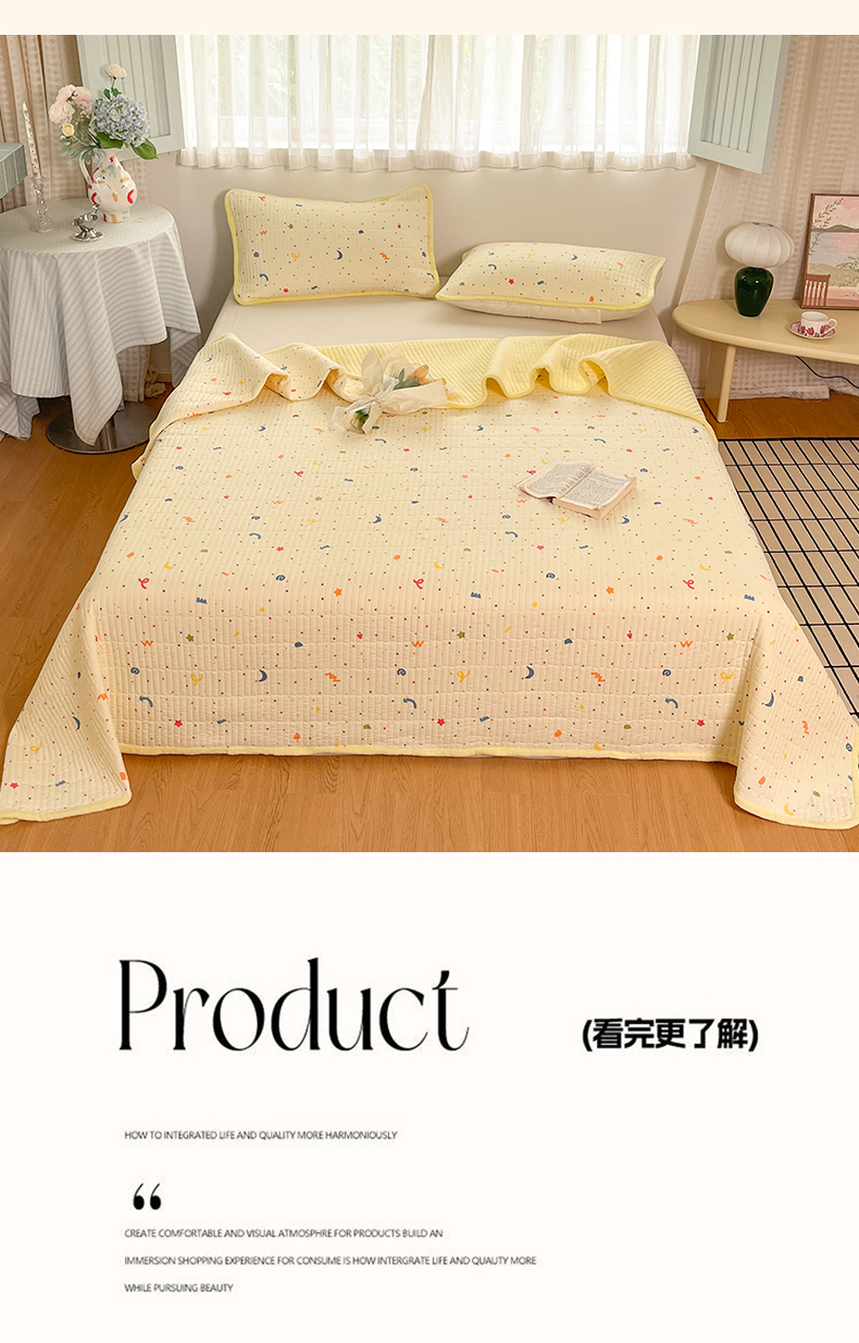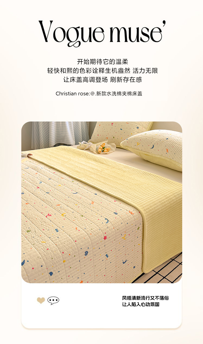 • 91家纺网 家纺一手货源 找家纺 瑞钰 2025新款A类双层纱印花夹棉床盖 星星点点