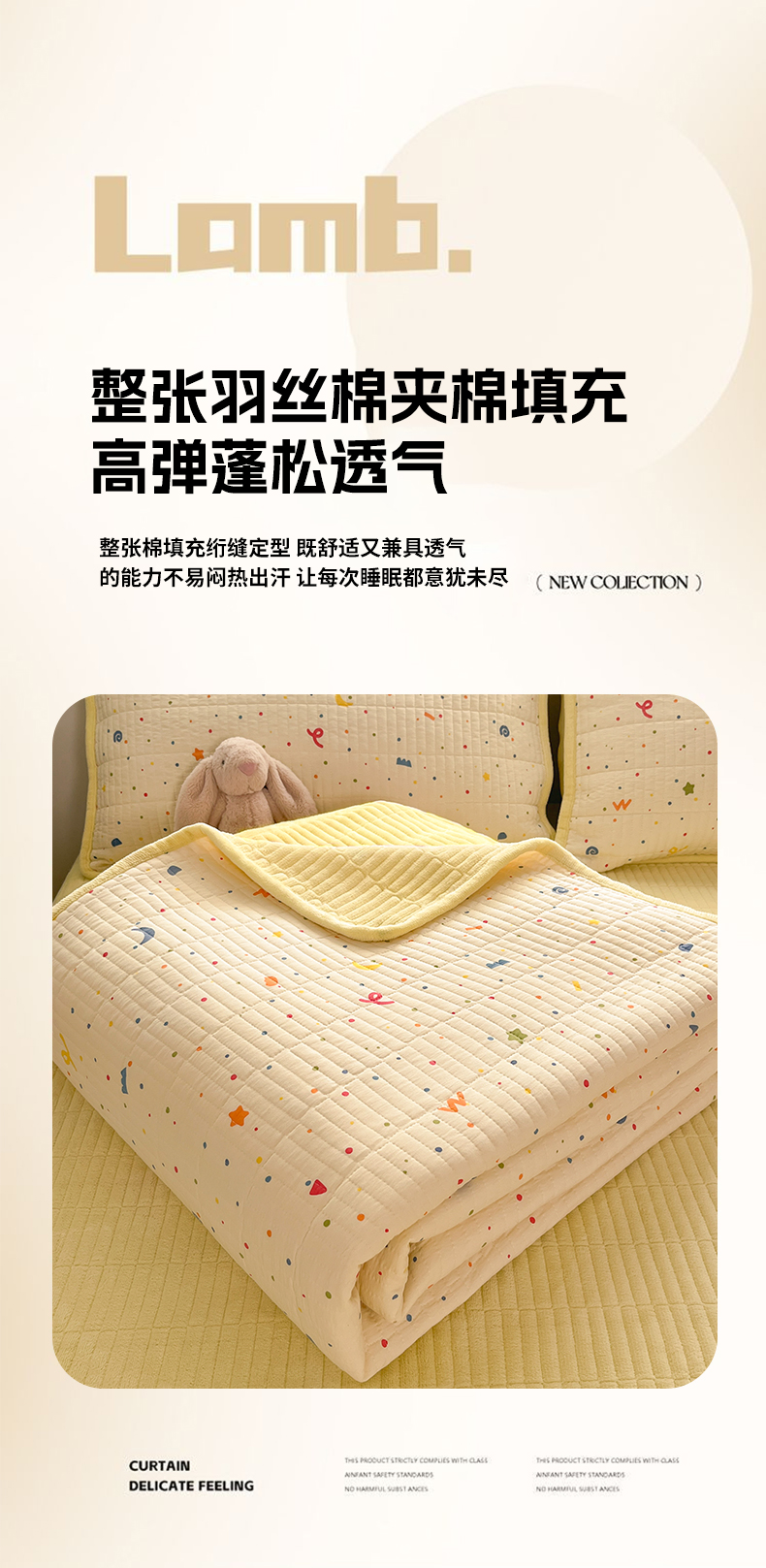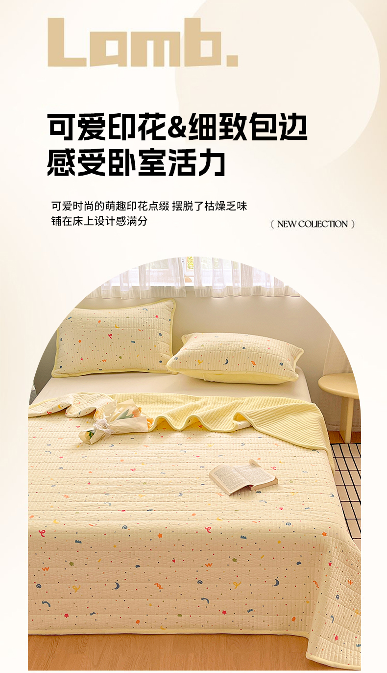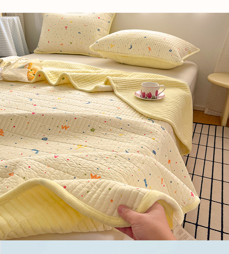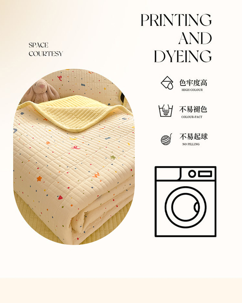 • 91家纺网 家纺一手货源 找家纺 瑞钰 2025新款A类双层纱印花夹棉床盖 星星点点