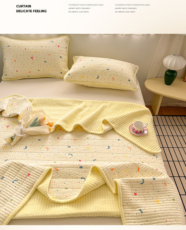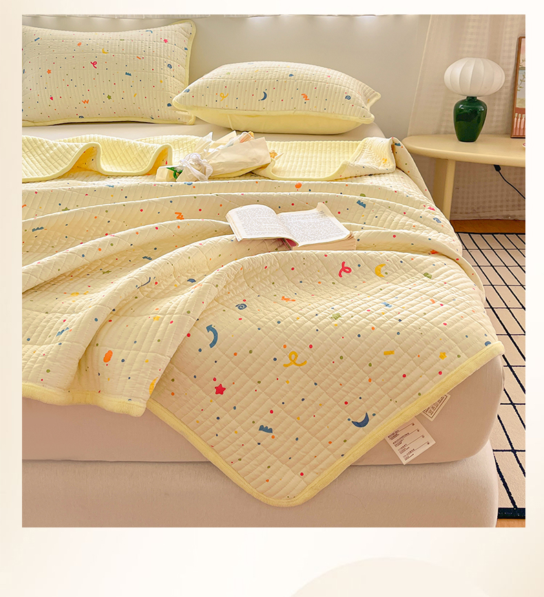 瑞钰 2025新款A类双层纱印花夹棉床盖 星星点点