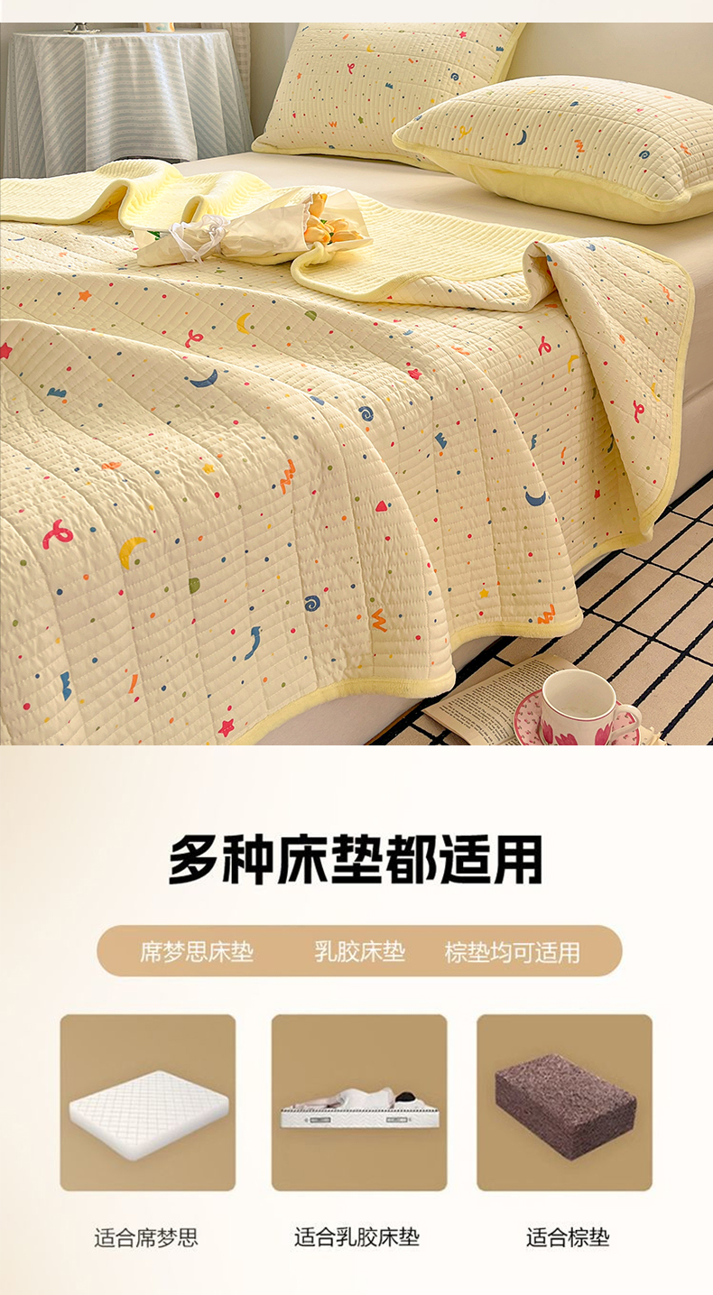 (总)瑞钰 2025新款A类双层纱印花夹棉床盖,半岛红茶,豹纹凯蒂,波点蓝,彩色爱心,点点蓝,豆寇,繁花,粉玉,海盐童话,花间兔,欢天小狗,奶球,普罗旺斯,青柠,无印红格,小蓝格,星星点点,紫小兔