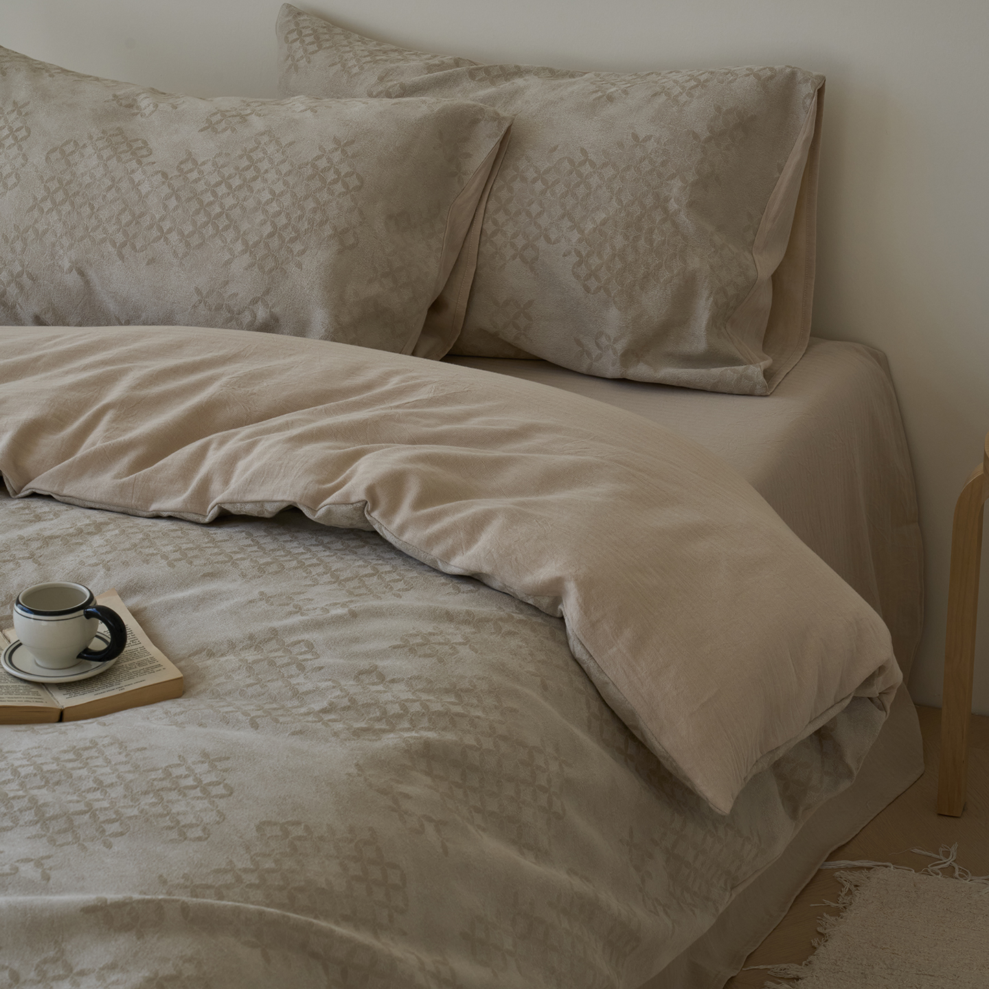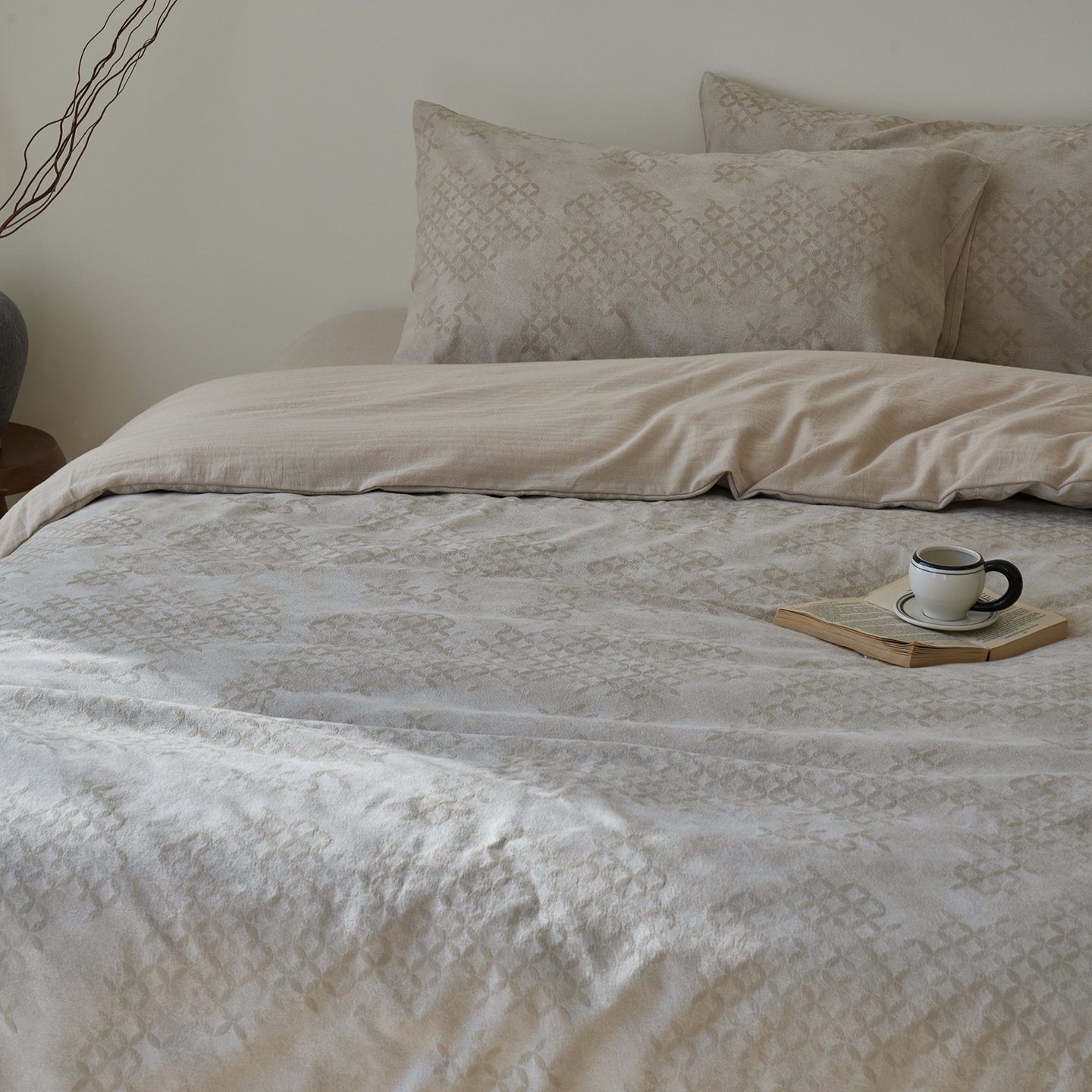 (总)云上 2025全棉色织大提花床品·侘寂潮汐 ,潮汐-黑灰,潮汐-金,潮汐-咖,潮汐-米