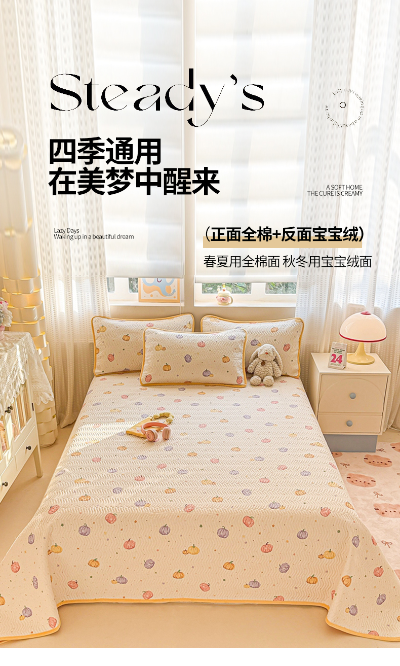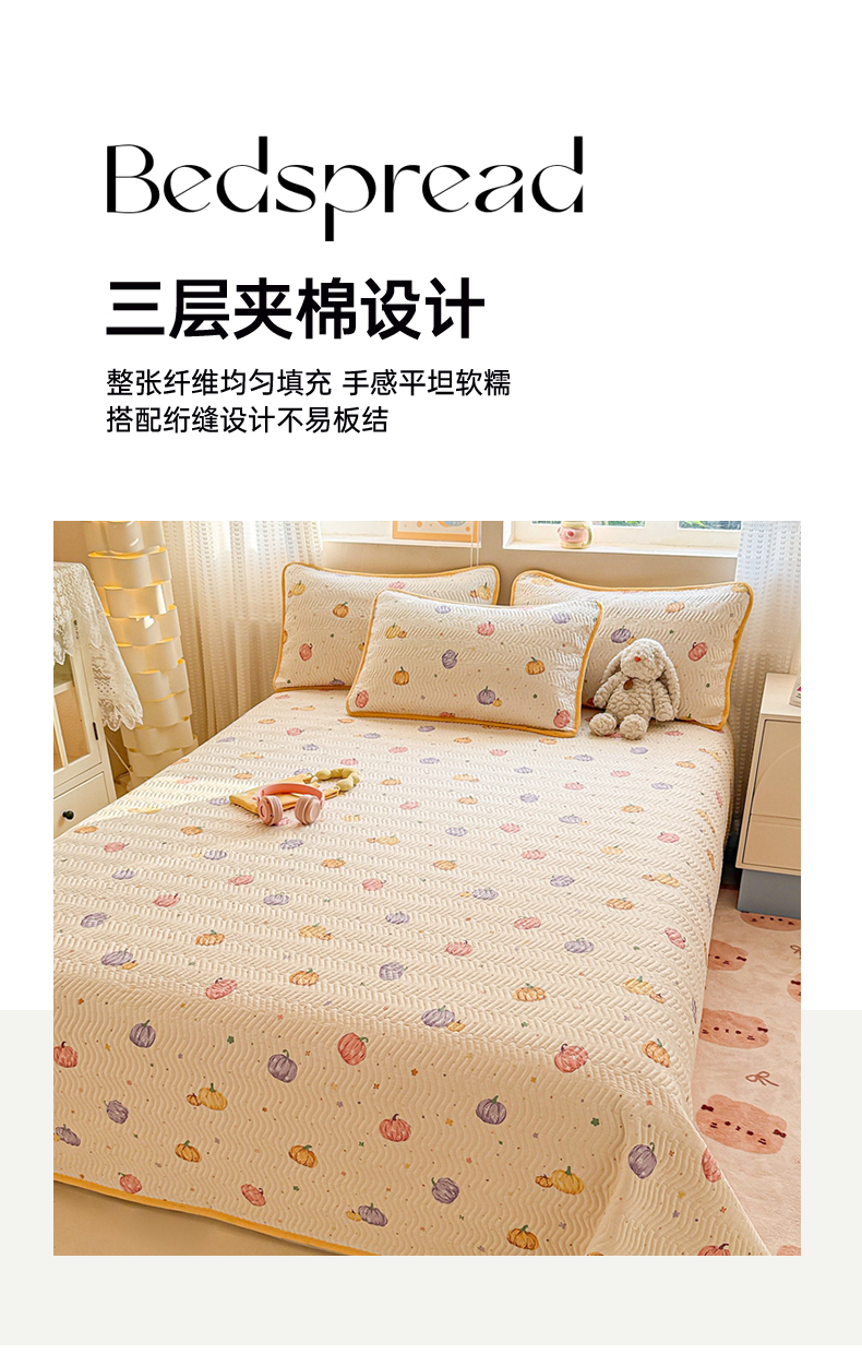 布兰鸟家纺【1店】 2025新款全棉宝宝绒夹棉床盖单品床盖床盖单件(四季换面用) 贝贝南瓜