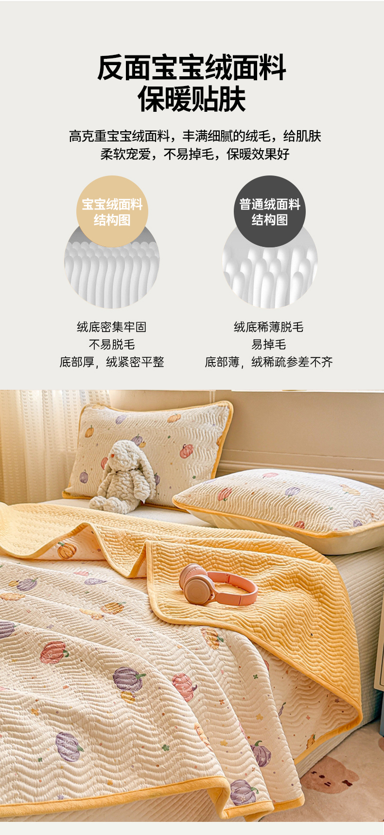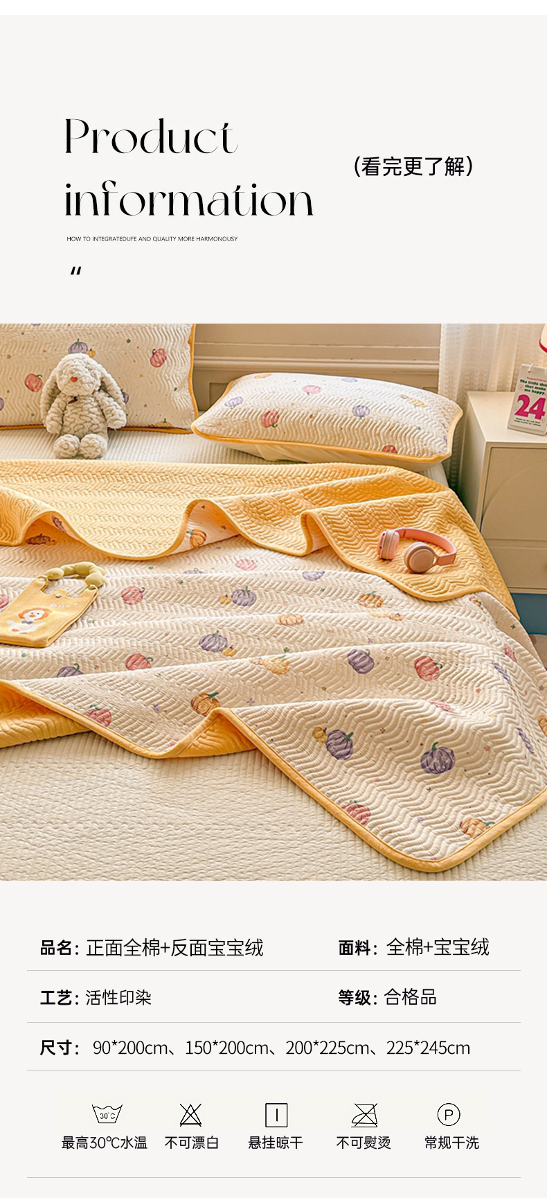 商品名称:布兰鸟家纺【1店】 2025新款全棉宝宝绒夹棉床盖单品床盖床盖单件(四季换面用) 贝贝南瓜