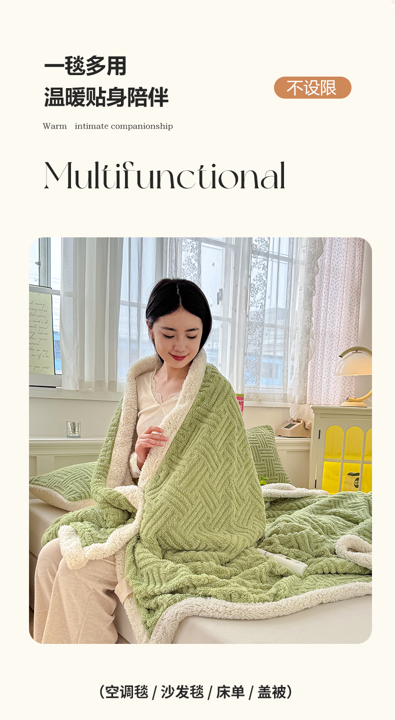 (总)默忆 2025新款塔芙绒提花毛毯,草木绿,冰川灰,蓝灰色,米白色,米黄色,深卡其,组合