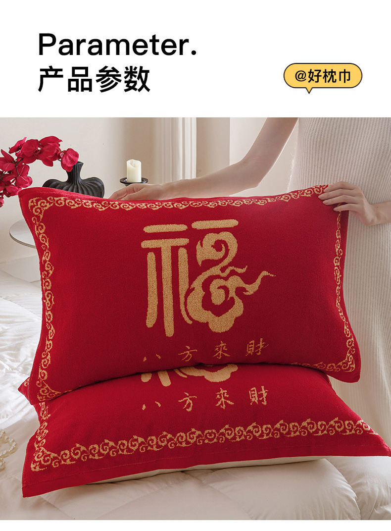 (总)爱港家纺 2025专版新款老式全棉大红枕巾结婚枕巾喜庆百福枕巾,八方来财,锦绣花福,龙凤呈祥,童话喜韵,吾家有喜,永结同心,组合