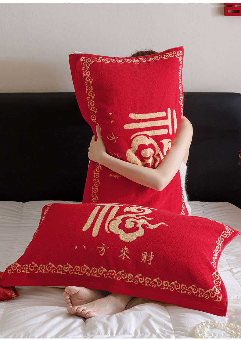 爱港家纺 2025专版新款老式全棉大红枕巾结婚枕巾喜庆百福枕巾 八方来财