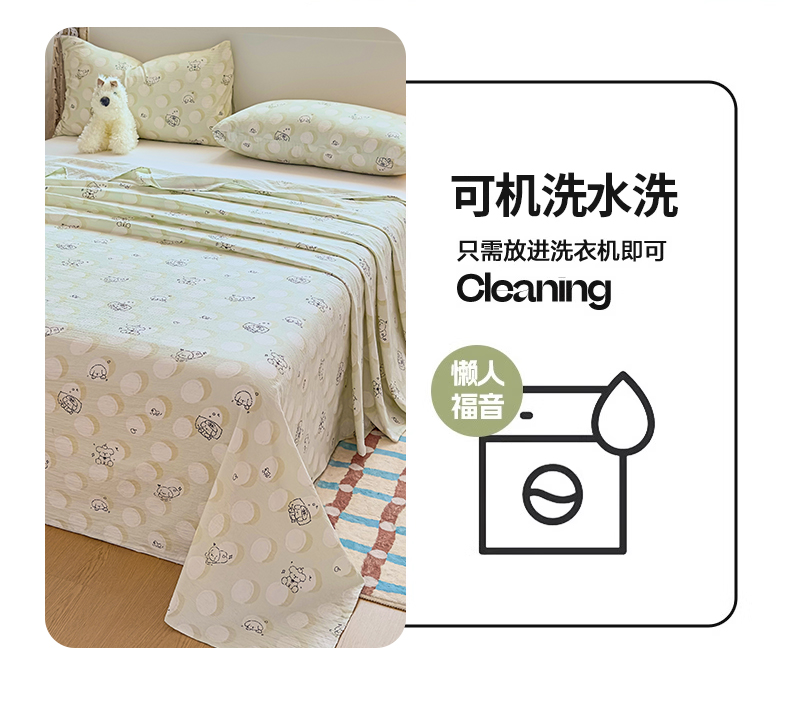 • 91家纺网 家纺一手货源 找家纺 麦乐迪 2025新款A类云感双层纱印花床单 青趣萌狗