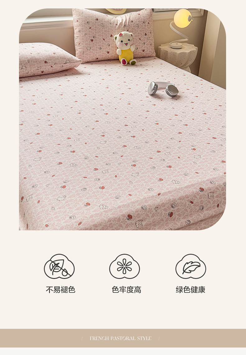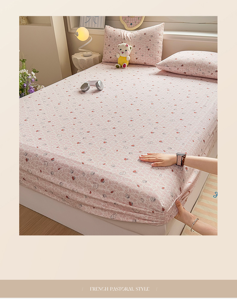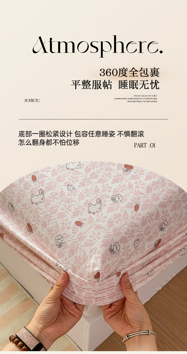 • 91家纺网 家纺一手货源 找家纺 麦乐迪 2025新款A类云感双层纱印花床笠 月野兔-粉
