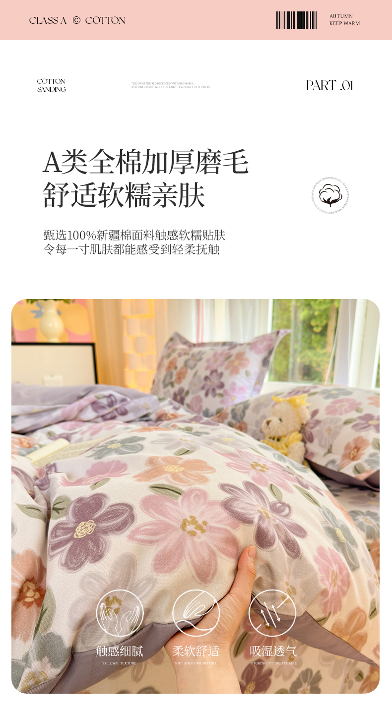 当前位置: 91家纺网 > 商品网购 > 床品套件 > 四件套 > 全棉普通四件套 > 拾物记 2025新款A类全棉纯棉加厚超柔磨毛四件套(提供 买家秀 质检报告和实验视频) 忆甜米紫