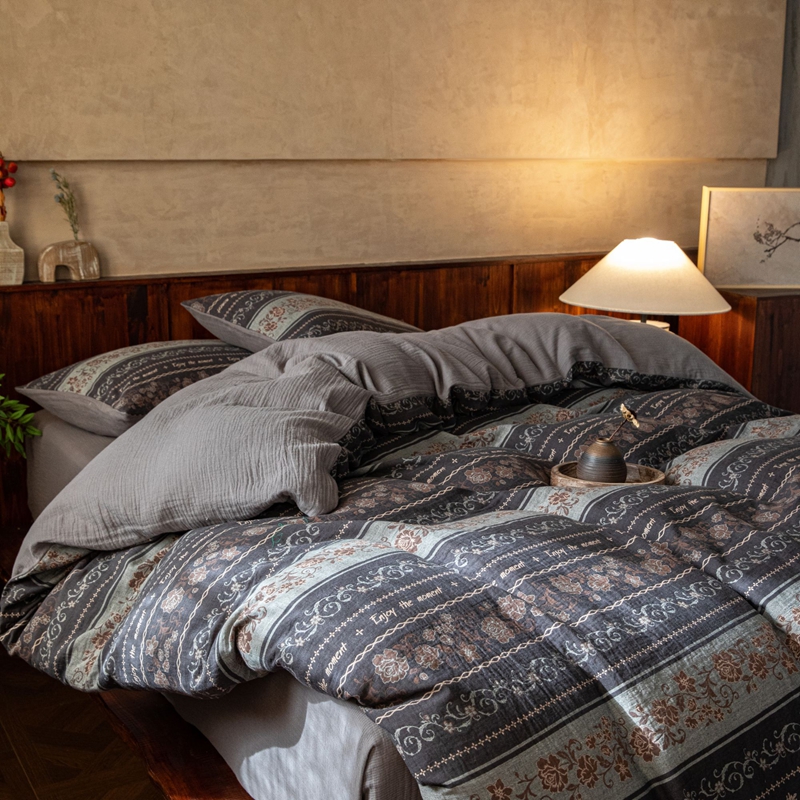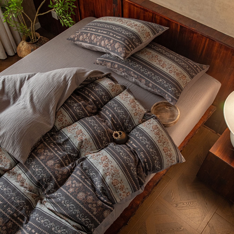 商品名称:(总)仰望棉麻双层纱供应链 2025新款冬日繁花全棉色织提花双层纱四件套