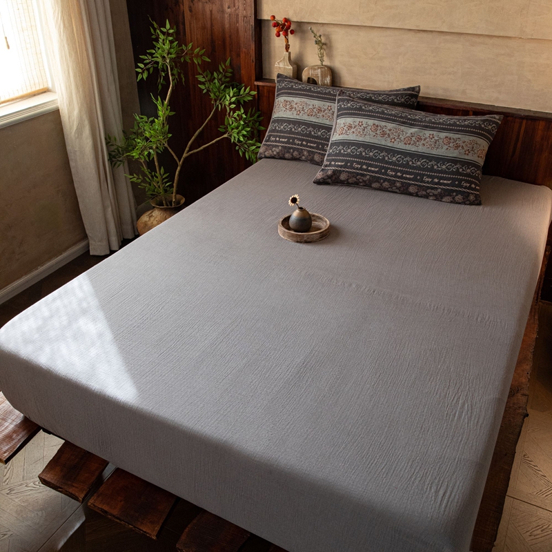 (总)仰望棉麻双层纱供应链 2025新款全棉色织提花四件套-蝶舞纽扣款,蝶舞,蝶舞-灰
