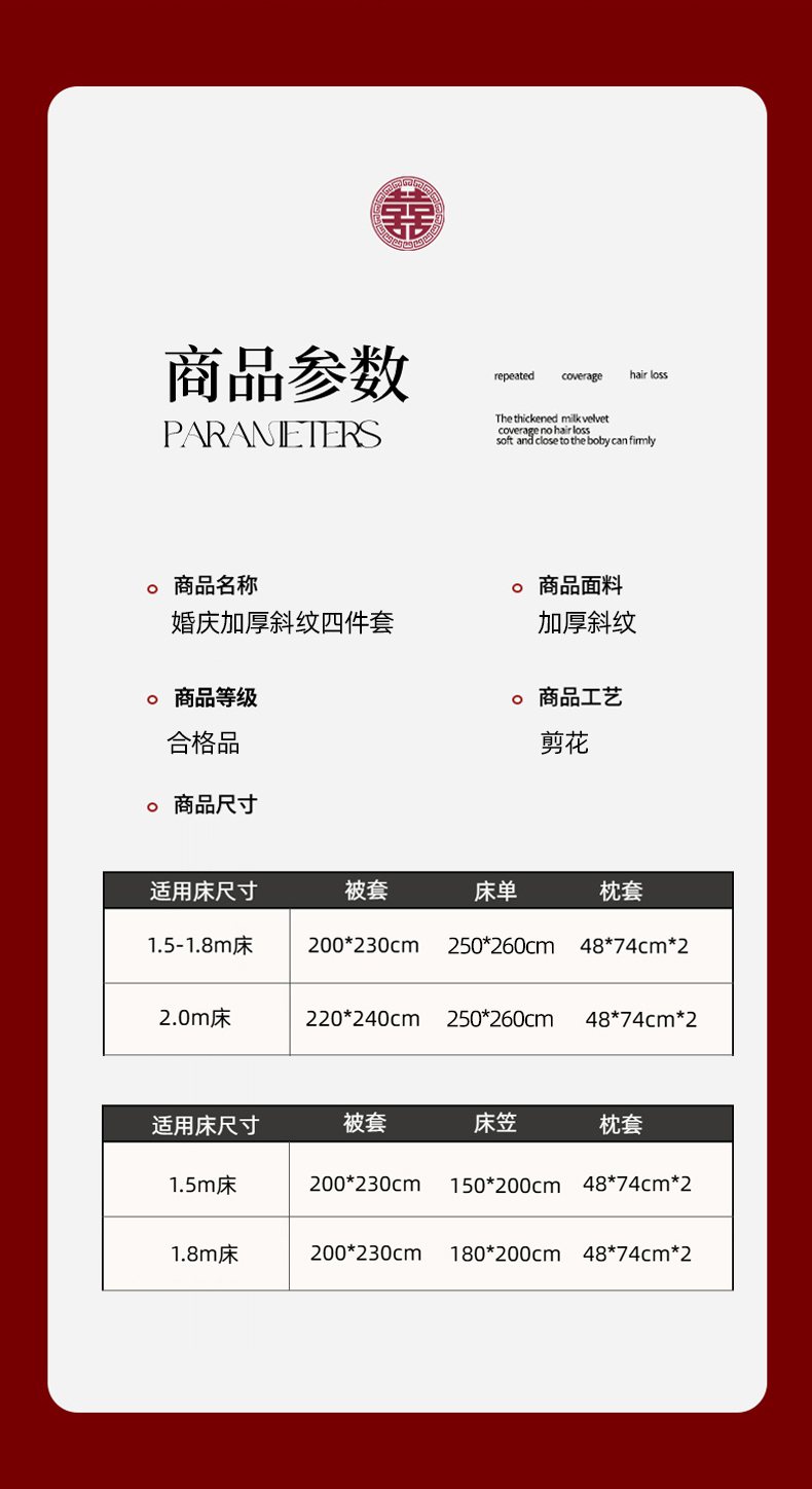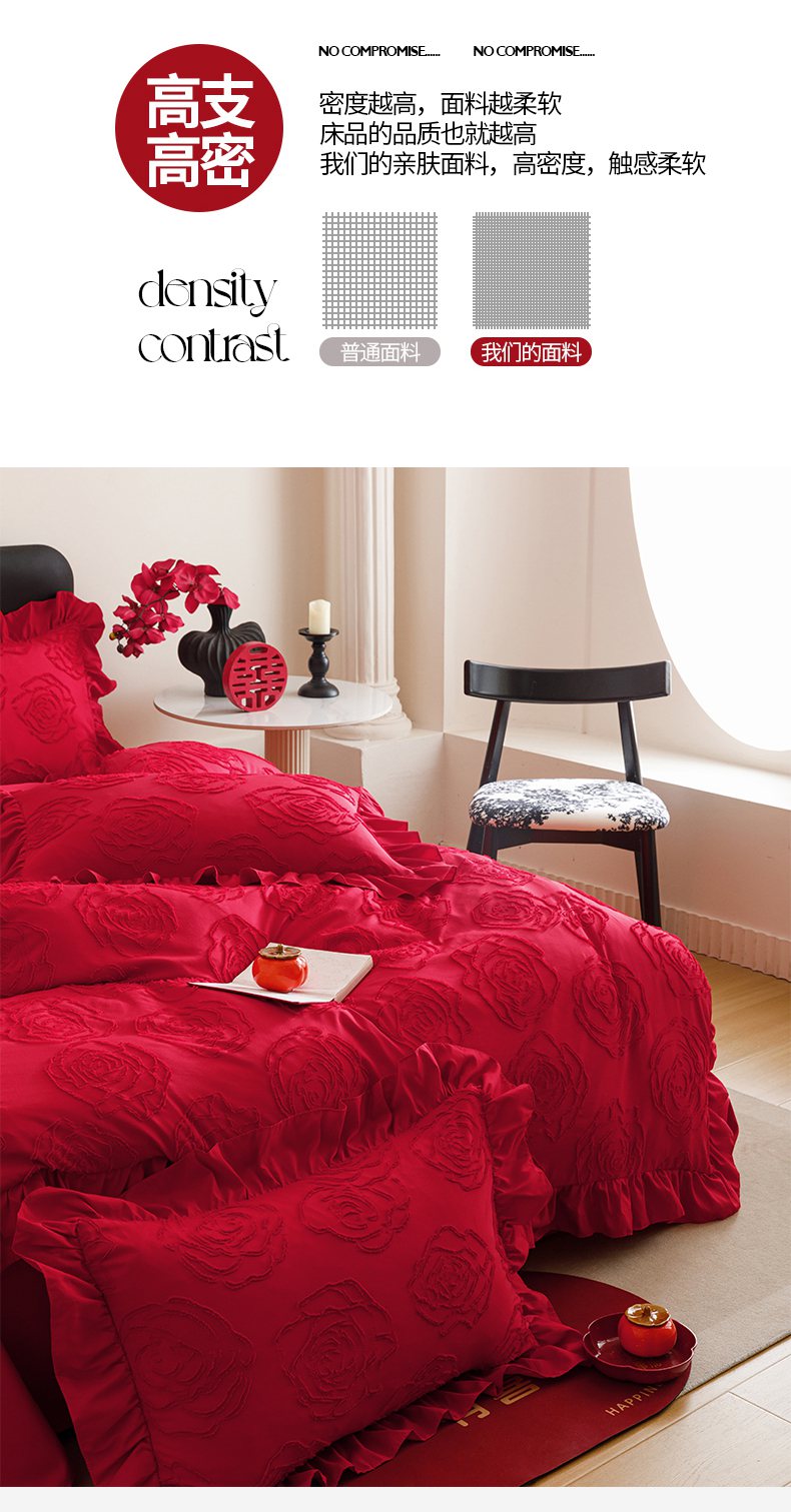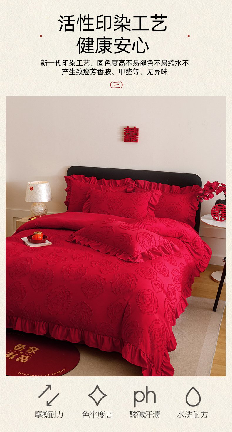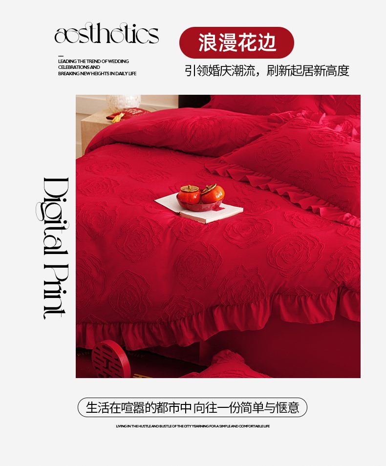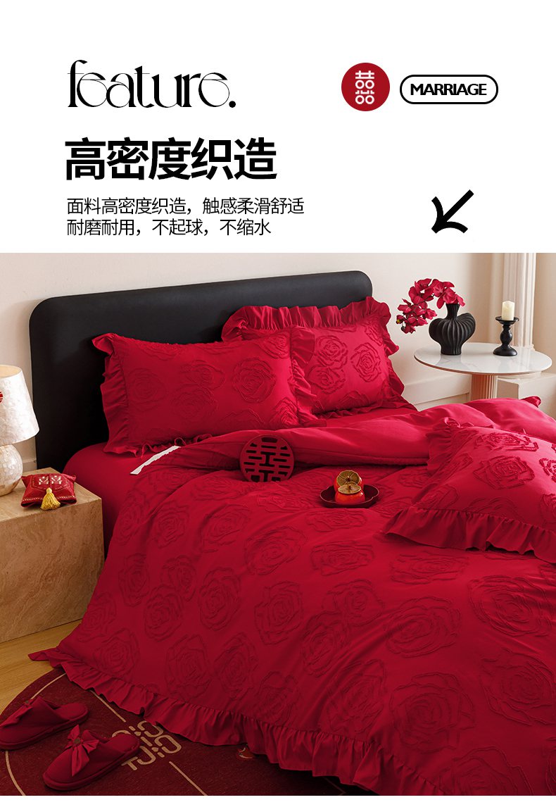 商品名称:(总)千希家纺 2025新款加厚斜纹剪花工艺婚庆四件套(提供买家秀)