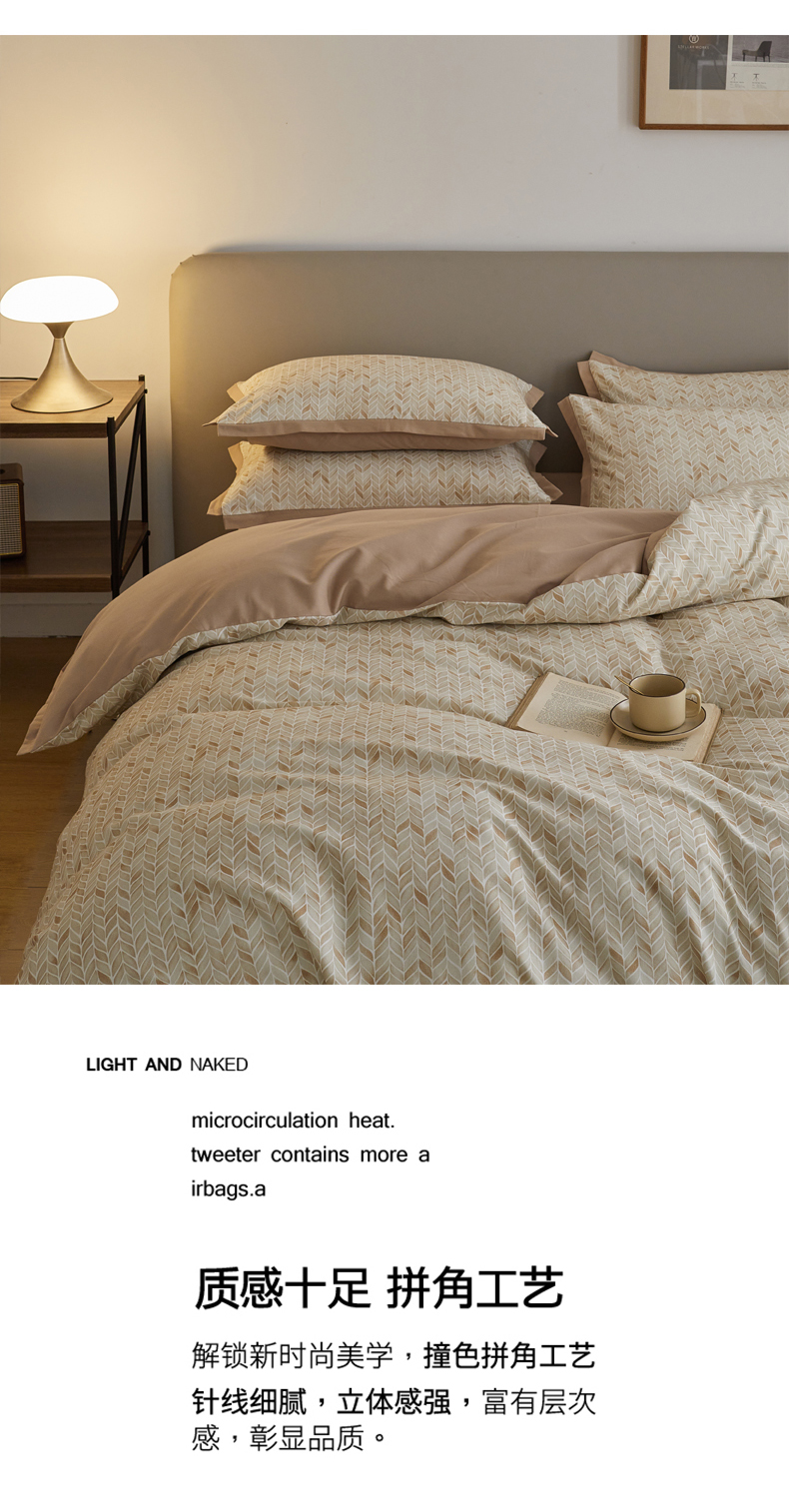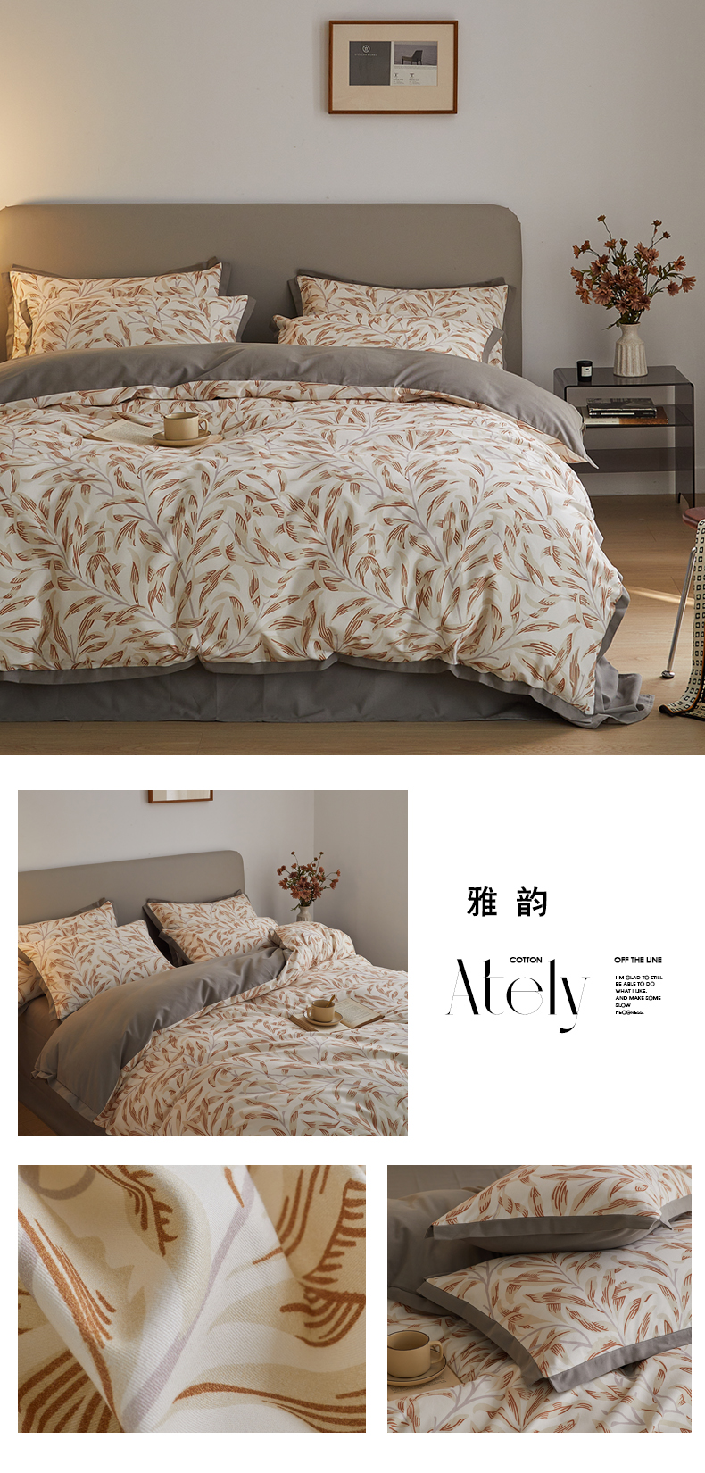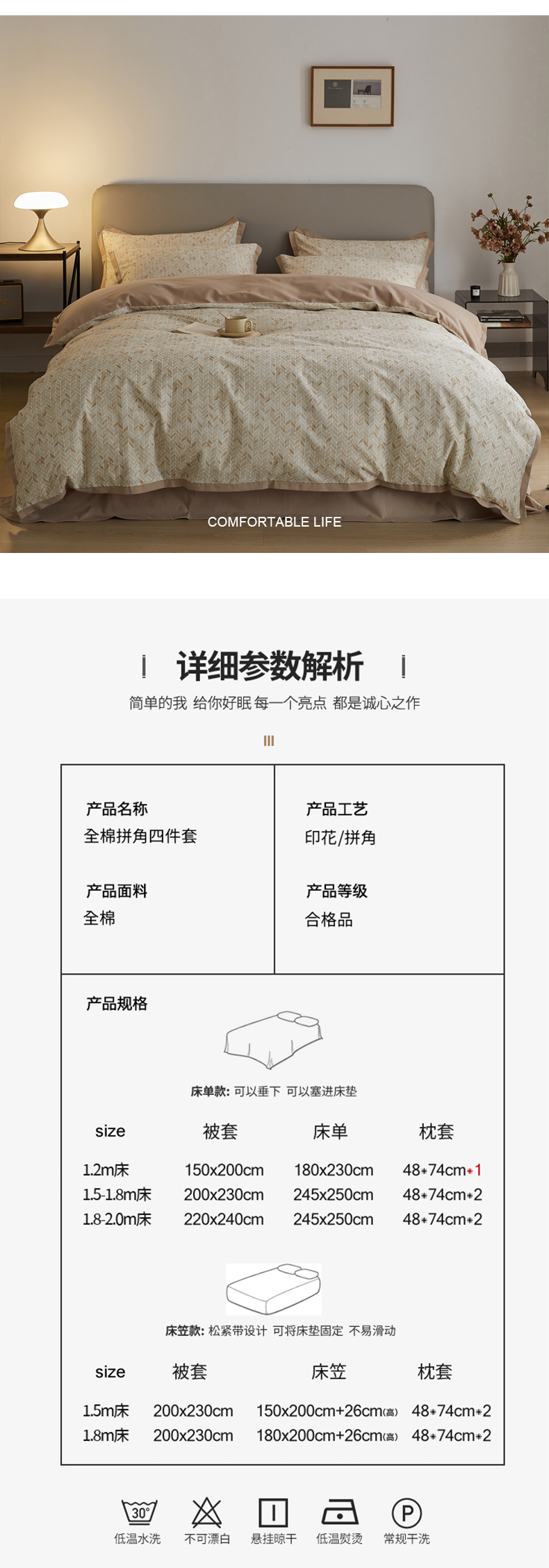 商品名称:咏绒家纺工厂店 2025新款全棉高定印花磨毛拼角四件套 雅韵