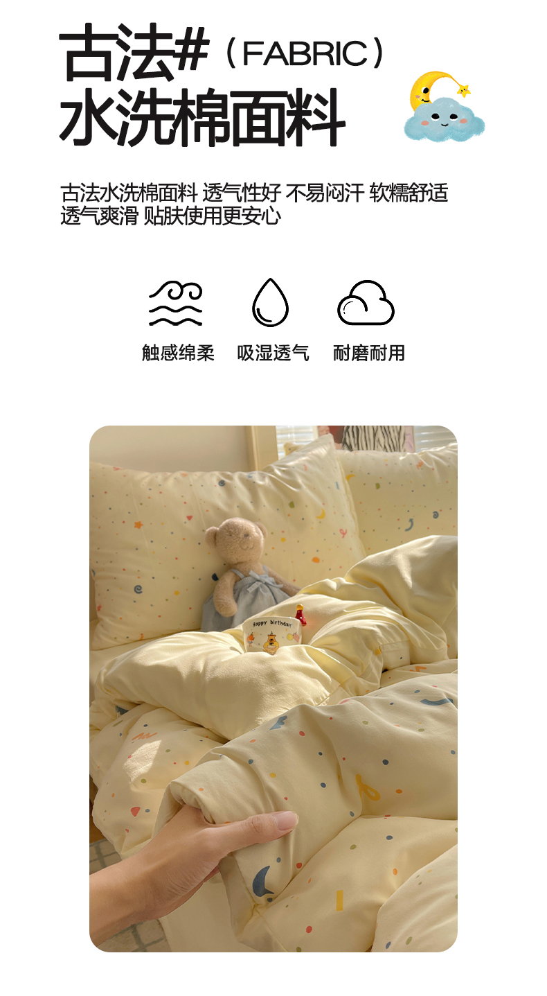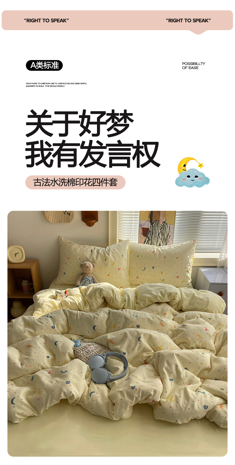 当前位置: 91家纺网 > 商品网购 > 床品套件 > 四件套 > 水洗棉四件套 > 星禾优选 2025新款A类仿棉四件套古法水洗棉小清新印花四件套单被套系列(提供买家秀) 小芝士
