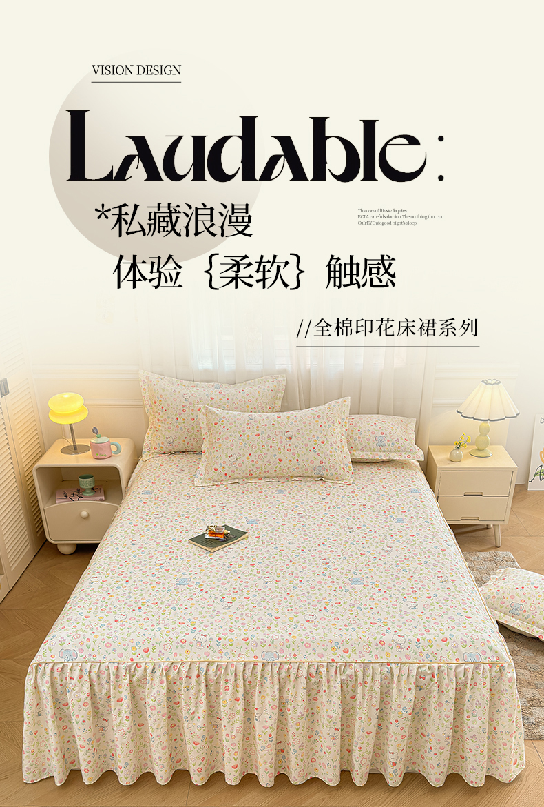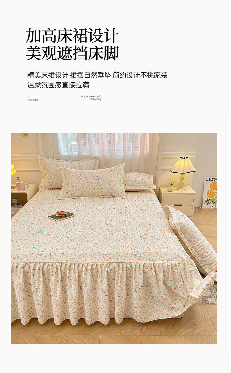 名优家纺 2026新款12868全棉小清新印花四件套单品系列-床裙三件套 动物花园