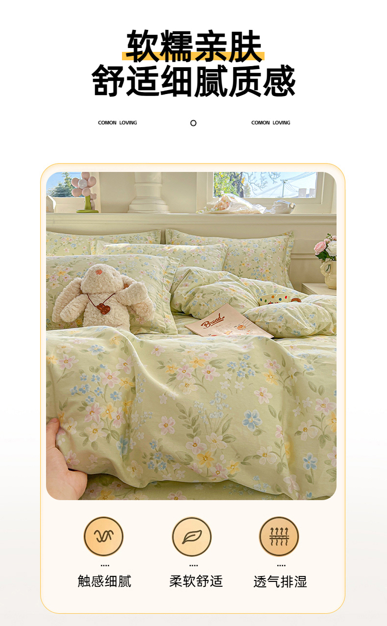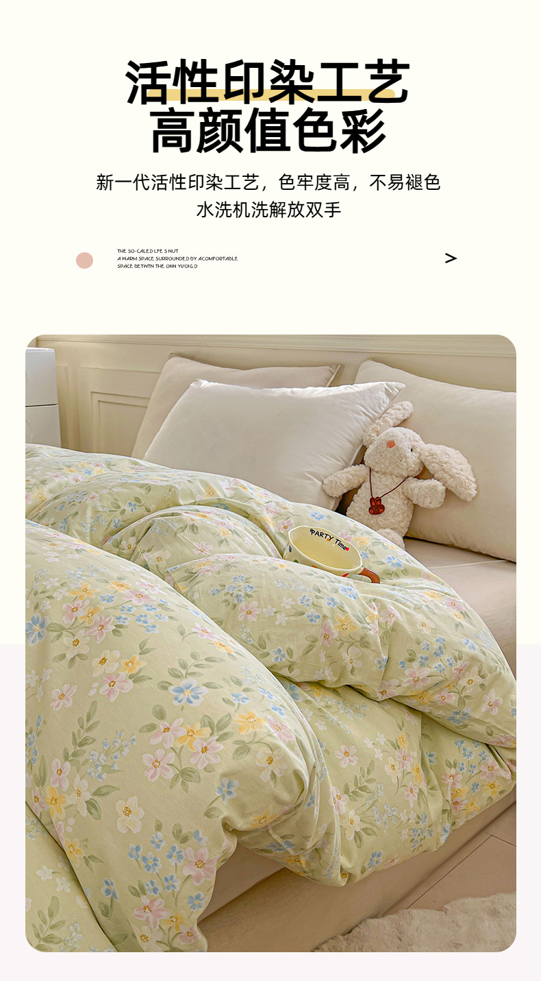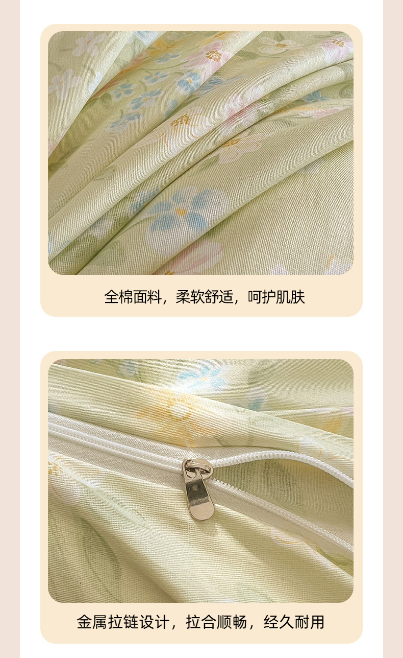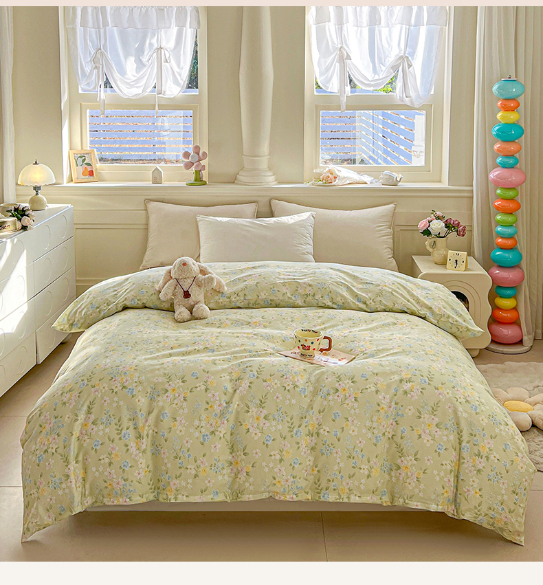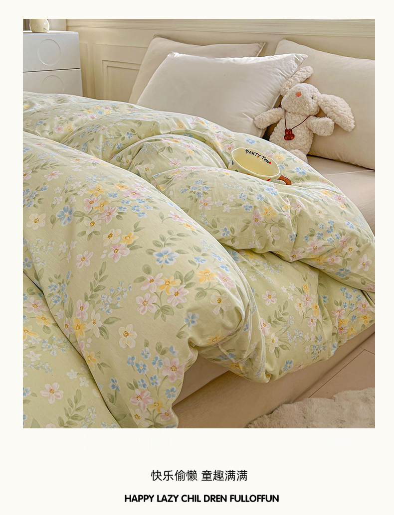 • 91家纺网 家纺一手货源 找家纺 名优家纺 2026新款12868全棉小清新印花四件套单品系列-单被套 徐徐花开