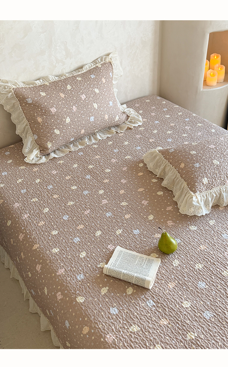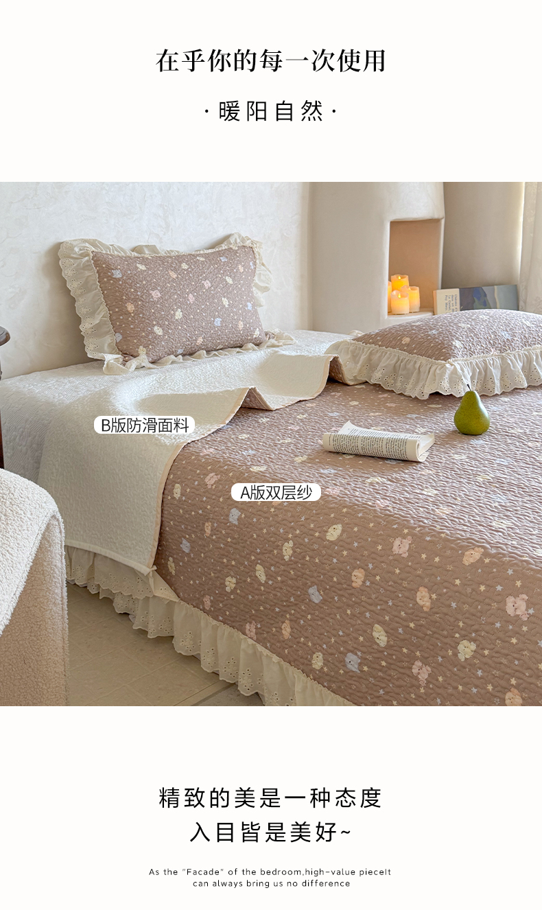 琳可家居 2026新款印花全棉双层纱床盖棉布花边高温水洗A类标准夹棉可机洗 熊熊乐园