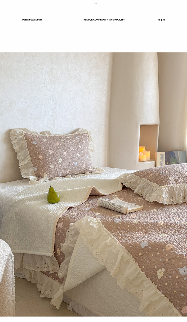 (总)琳可家居 2026新款60S长绒棉花边床盖A类双面全棉高温水洗-蝶恋系列,蝶恋-暖白,蝶恋-卡其,蝶恋-雾粉,组合