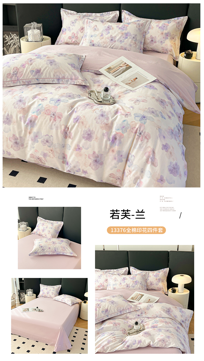 当前位置: 91家纺网 > 商品网购 > 床品套件 > 四件套 > 全棉普通四件套 > 艾迪尚家纺 2026新款133X76宽幅全棉纯棉印花四件套(有单品 可定制) 郁见你-紫