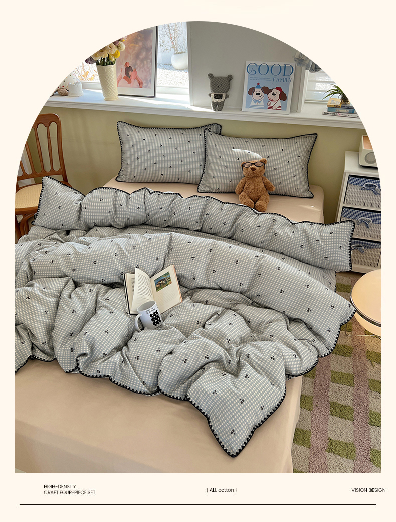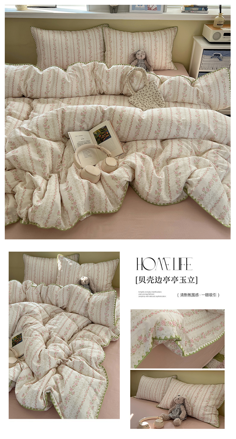 当前位置: 91家纺网 > 商品网购 > 床品套件 > 四件套 > 双层纱四件套 > 曼之夏 2026新款全棉纯棉有氧双层纱贝壳边四件套 贝壳边艾米莉